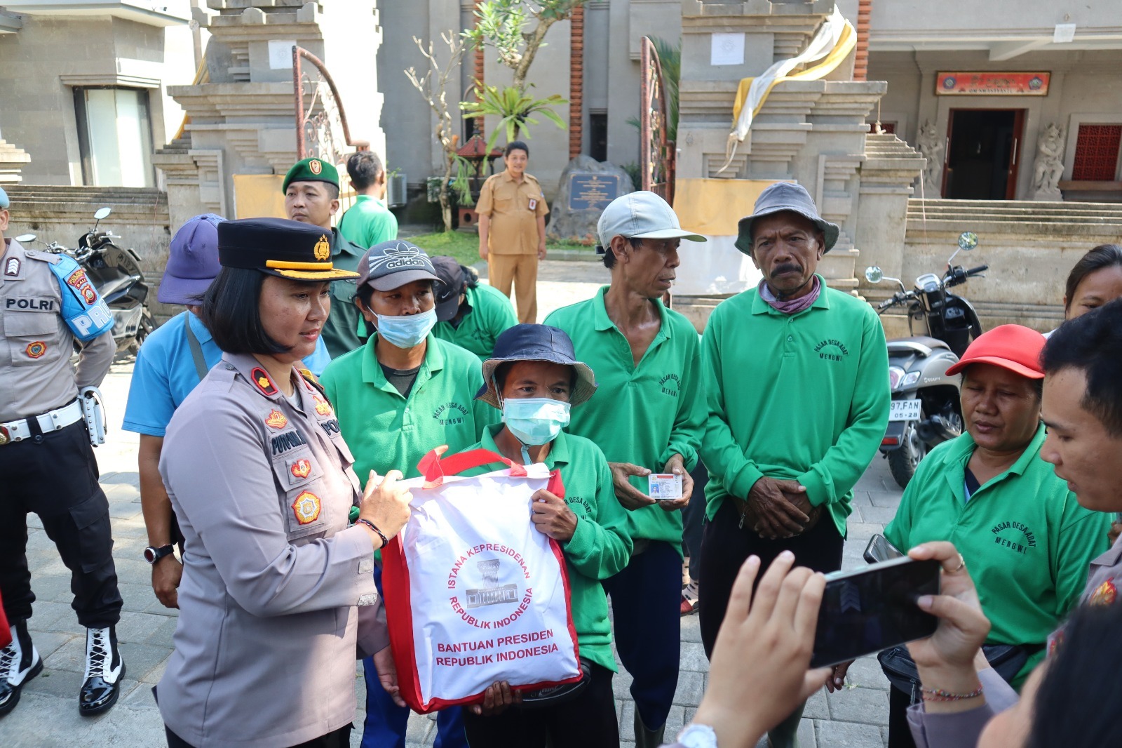 “Sesuai Perintah bapak Kapolres, hari ini kita (Polres Badung-red) langsung mendistribusikan ribuan paket sembako bantuan kemanusiaan dari bapak Presiden RI ke seluruh wilayah Polres Badung” Ungkap Kompol Putu Diah Kurniawandari mewakili Kapolres Badung AKBP Teguh Priyo Wasono, SIK.