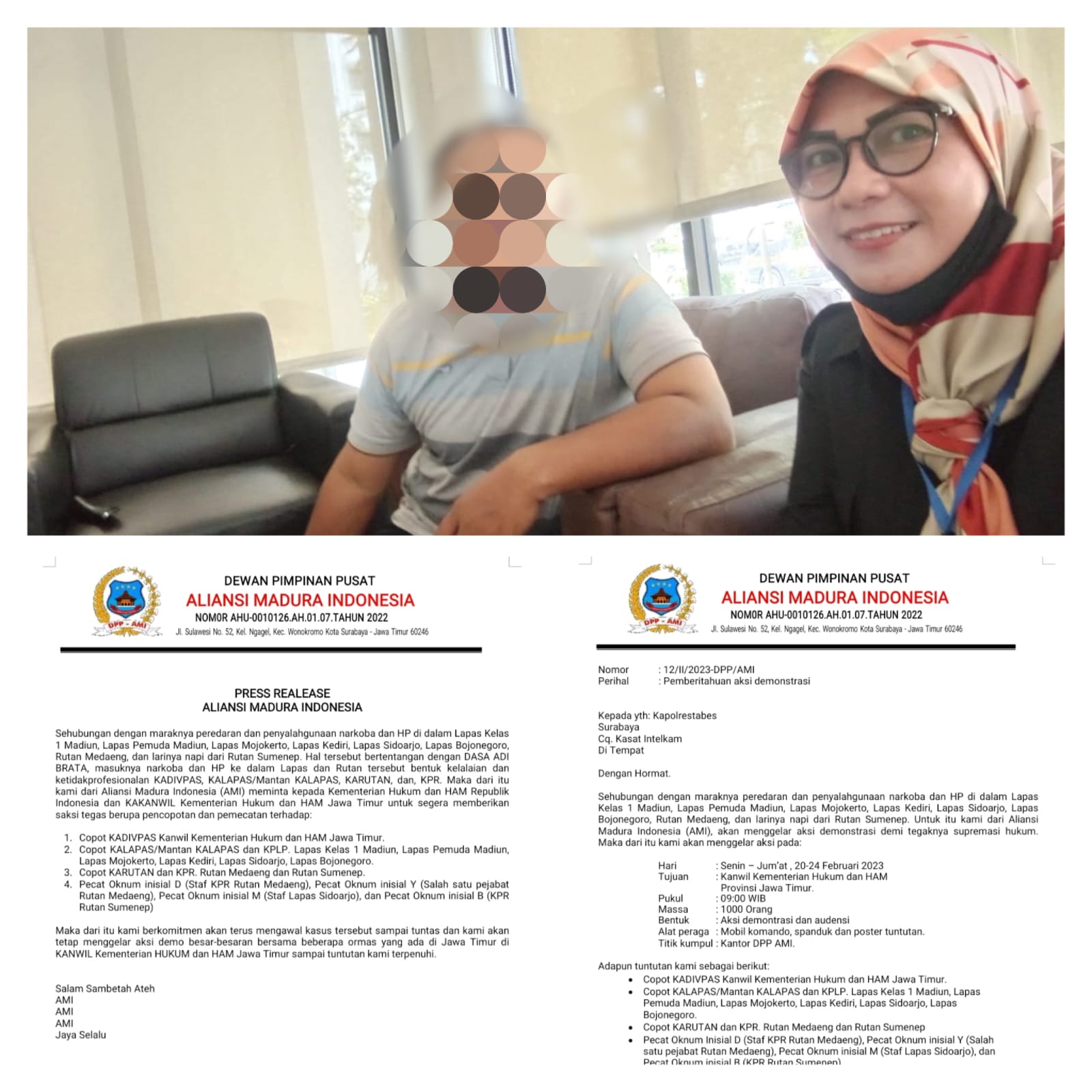 Kami juga sudah mengantarkan surat pemberitahuan ke Polrestabes Surabaya terkait aksi demo besar-besaran Jilid III di kanwil Kemenkumham Jawa timur terkait maraknya peredaran dan Penyalahgunaan narkoba dan HP didalam Lapas Pemuda Madiun, Lapas Kelas 1 Madiun, Lapas Kediri, Lapas Mojokerto, Lapas Sidoarjo, Lapas Bojonegoro, Rutan Medaeng dan larinya napi di Rutan Sumenep.