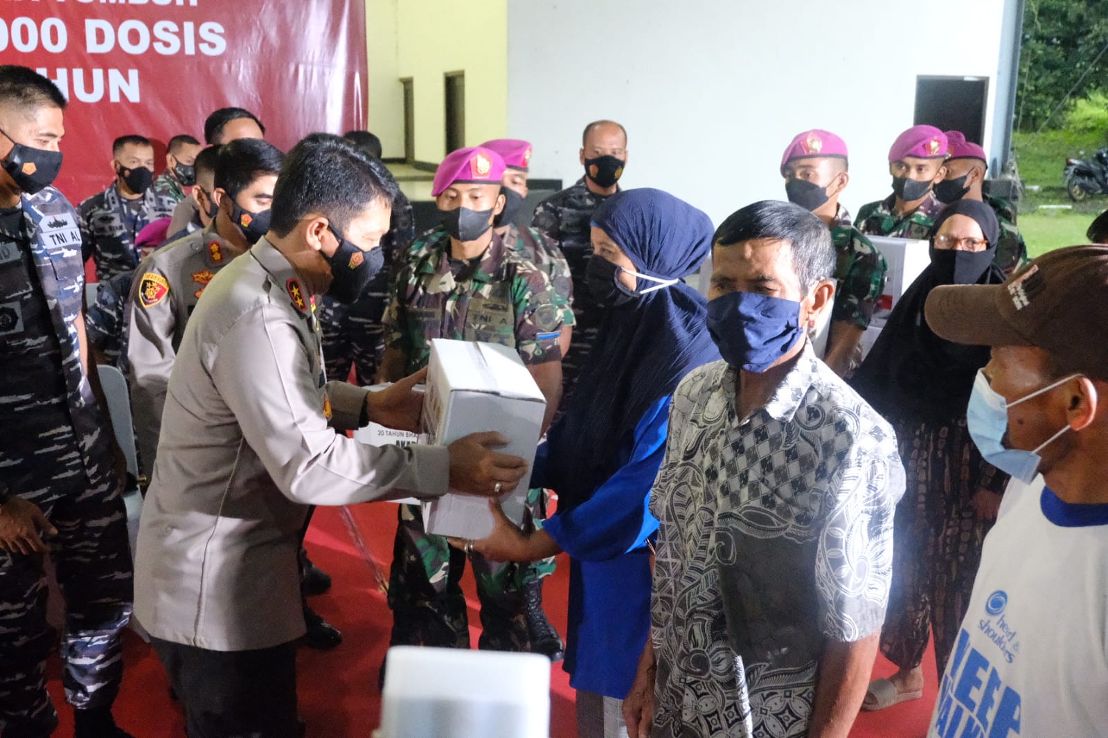 Kegiatan dilanjutkan dengan penyerahan bantuan sosial kepada korban yang terdampak covid-19.
