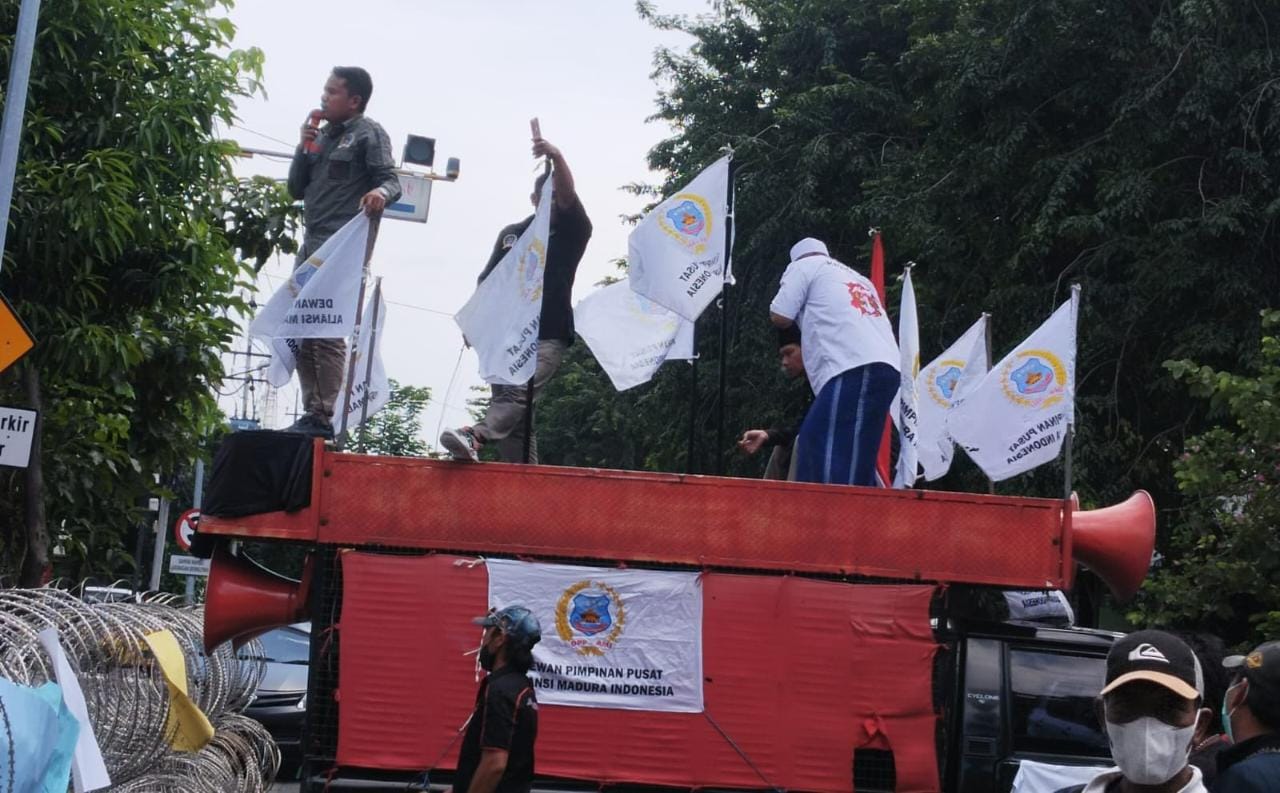 Hal tersebut seperti yang dikemukakan oleh Baihaki Akbar selaku ketua umum Aliansi Madura Indonesia (AMI) saat menyampaikan orasinya di depan kantor kementerian hukum dan HAM.