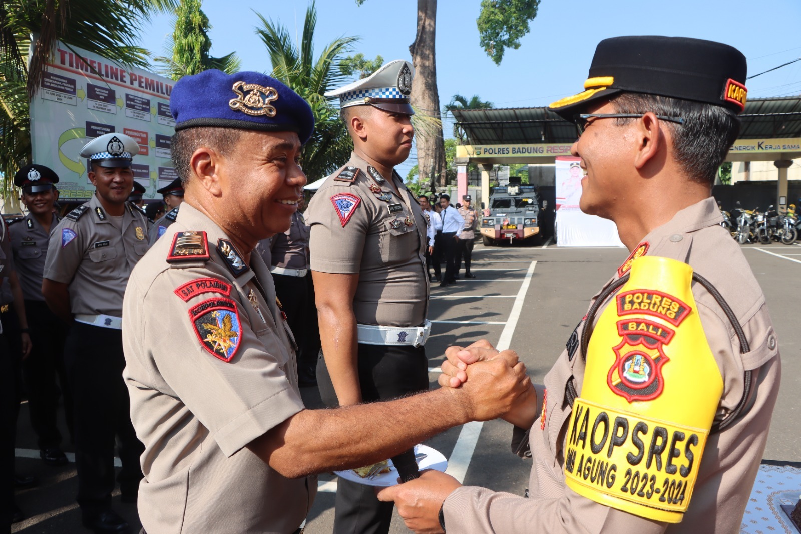 Brilian-news.id | BALI – Kepala Kepolisian Resor Badung AKBP Teguh Priyo Wasono, SIK selaku inspektur upacara (Irup) dalam acara upacara laporan Kenaikan Pangkat Perwira dan Bintara Polres Badung di lapangan apel Polres Badung Jl. Kebo Iwa No. 1 Mengwitani Kecamatan Mengwi Kabupaten Badung, Bali. Selasa (02/01/2024) pagi pukul 08.30 Wita.
