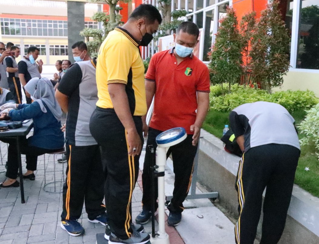 Menyadari hal itu, pihak Polres Gresik mewajibkan seluruh anggotanya untuk melakukan tes berat badan untuk mengetahui kelebihan berat badannya ,Jumat (19/11/2021).