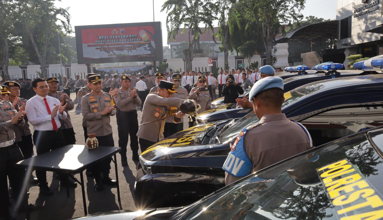 Pada kesempatan tersebut, Kapolrestabes Surabaya menyerahkan sejumlah mobil dan laptop kepada Bag/Sat/Si dan Polsek Jajaran, yaitu 1 unit mobil untuk sat pam obvit, 1 unit mobil untuk sat tahti dan 12 unit mobil untuk polsek jajaran guna meningkatkan giat patroli dalam rangka menjaga harkamtibmas Kota Surabaya supaya terlaksana dengan aman dan kondusif.