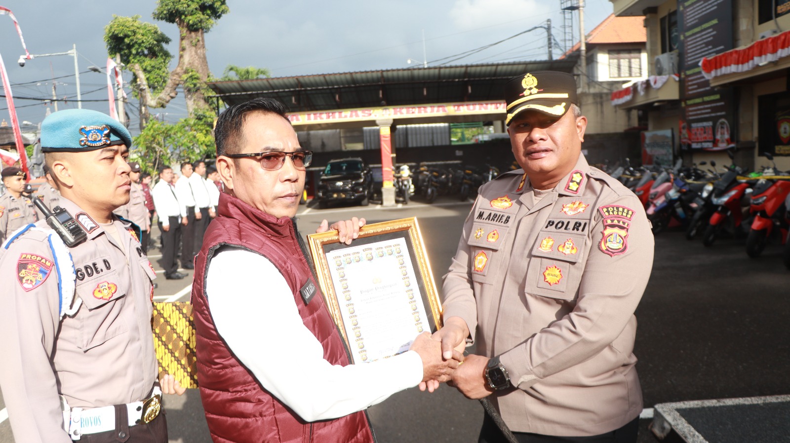 Brilian-news.id | BALI – Salah satu personel Polres Badung dianugerahi penghargaan oleh Kapolres Badung AKBP M. Arif Batubara, SH. SIK. MH. M.Tr. Opsla dalam menjalankan tugas sebagai anggota Polri, pemberian penghargaan tersebut dilaksanakan pada saat apel pagi yang dirangkaikan dengan jam pimpinan yang dilaksanakan di lapangan apel Polres Badung Jl. Kebo Iwa No. 1 Mengwitani Kecamatan Mengwi Kabupaten Badung, Senin (28/7/25) pagi.
