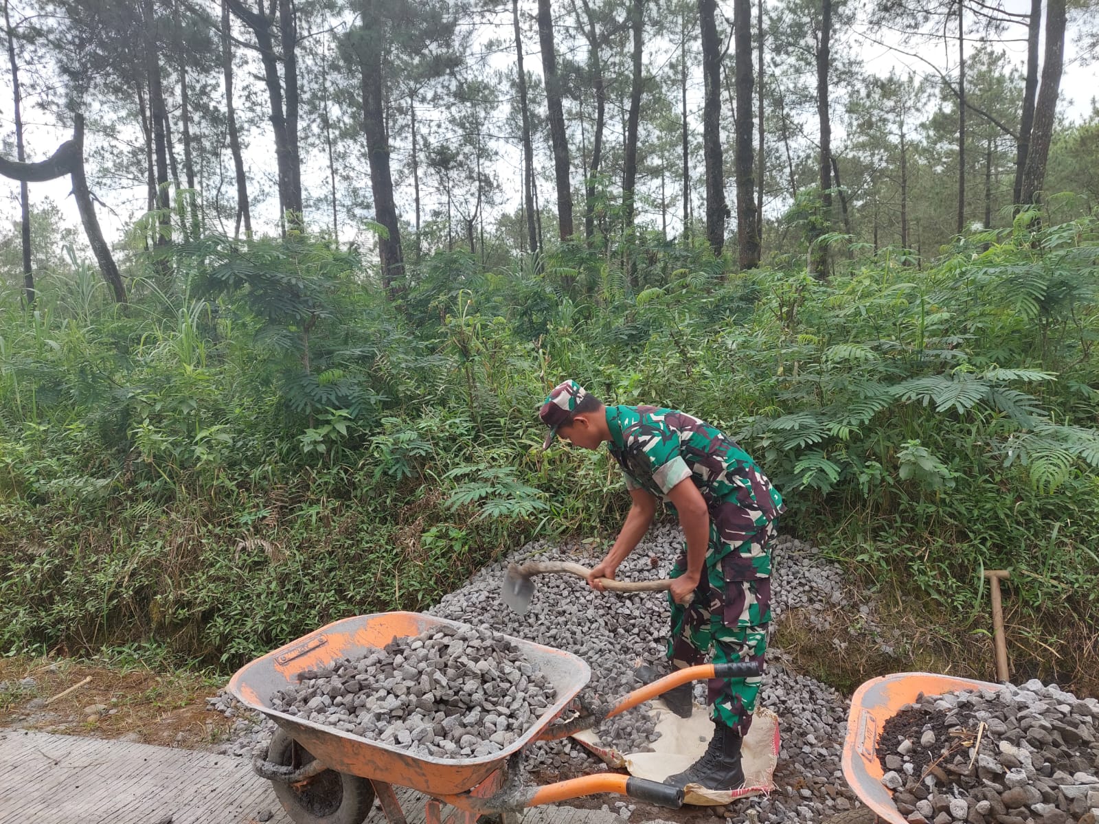 Dari kondisi inilah Kopda Mohammad Sahroni anggota Babinsa dari Koramil 0820/20 Banyuanyar bersama warga masyarakat, bergotong royong mengadakan Perbaikan atau pengecoran jalan dengan harapan dapat memperlancar lalu lintas jalur perekonomian Desa, dan tidak terjadi genangan air di jalan, Minggu (12/11)