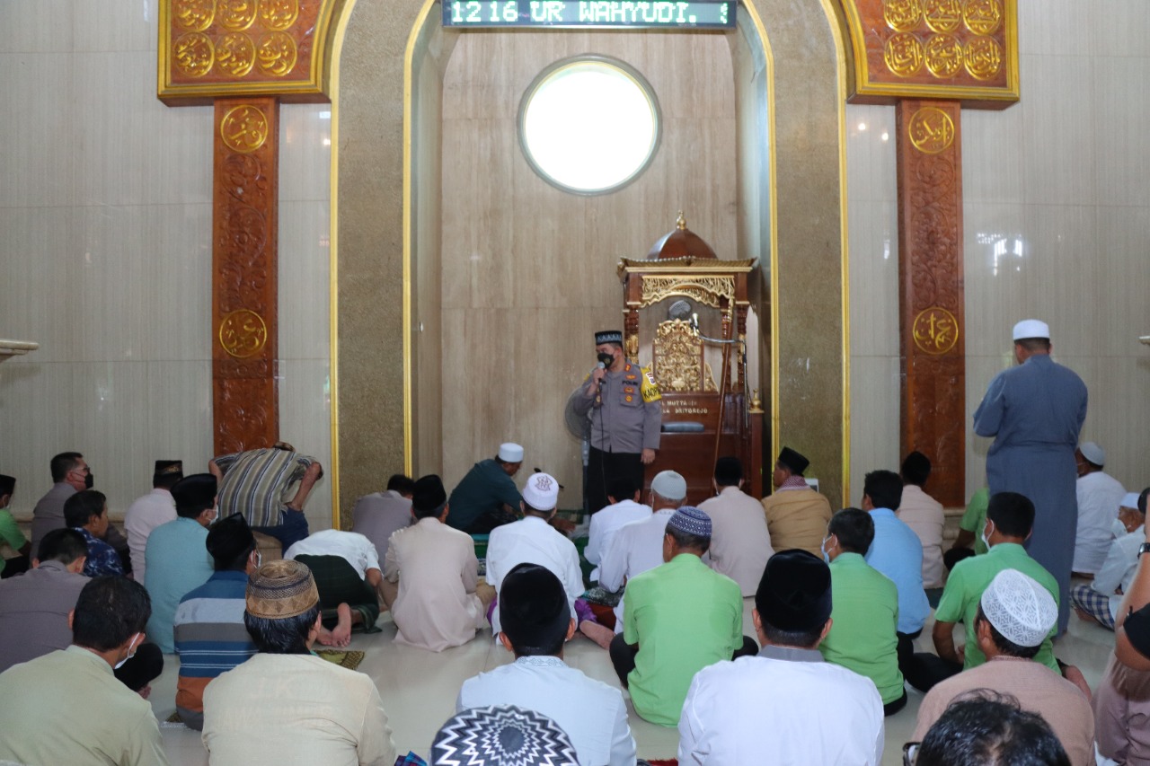 Brilian°Gresik – Kapolres Gresik AKBP Mochamad Nur Azis, S.H., S.I.K., M.Si. berkesempatan berikan sambutan seusai sholat Jum’at berjama’ah di masjid Al – Muttaqin driyorejo gresik. Jum’at (17/6/22).