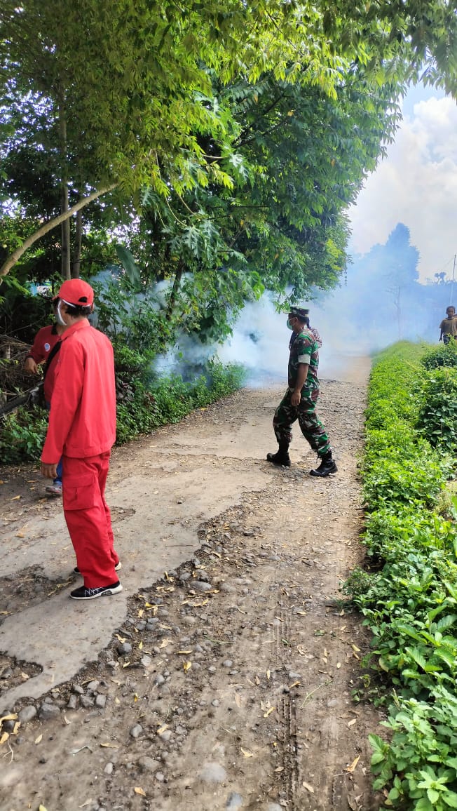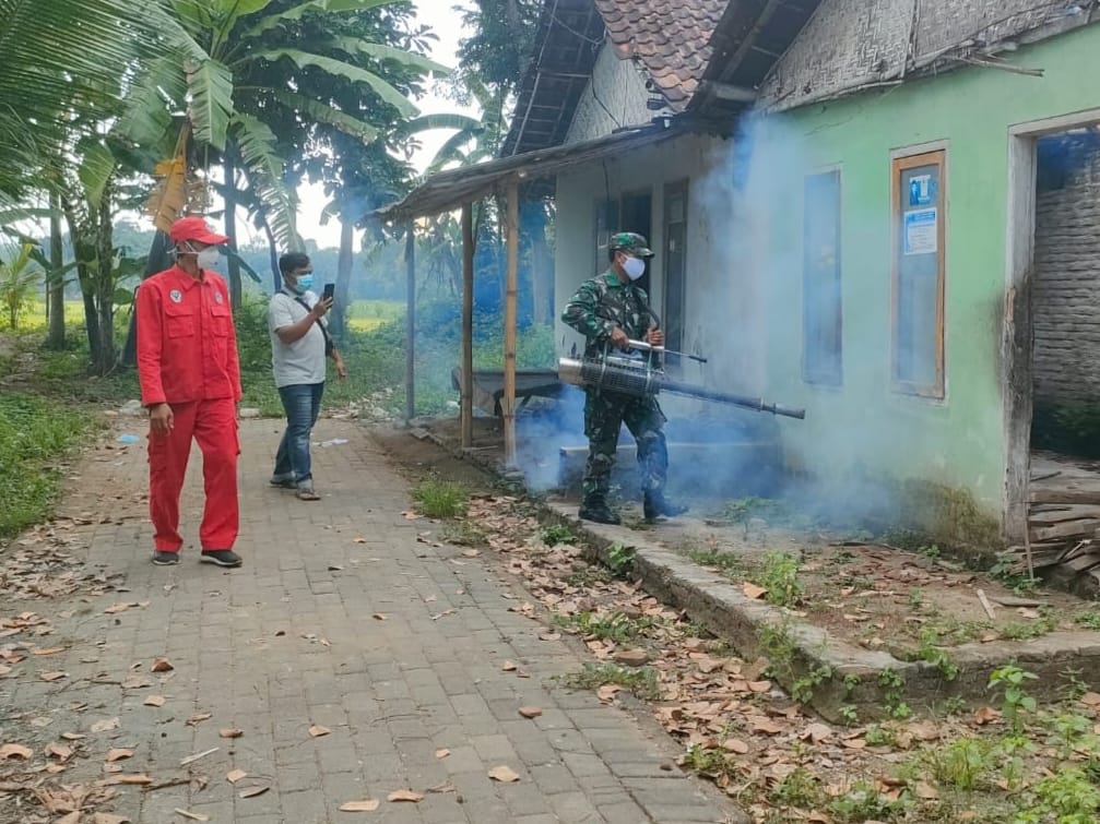 Brilian-news.id | Probolinggo,Sebagai upaya dalam mengantisipasi serangan nyamuk aides aegepty sebagai penyebab utama terjadinya penyakit demam berdarah dengue (DBD), Koramil 0820/14 Besuk melakukan pemberantasan sarang nyamuk (PSN) dengan melaksanakan fogging, Kamis (22/2).