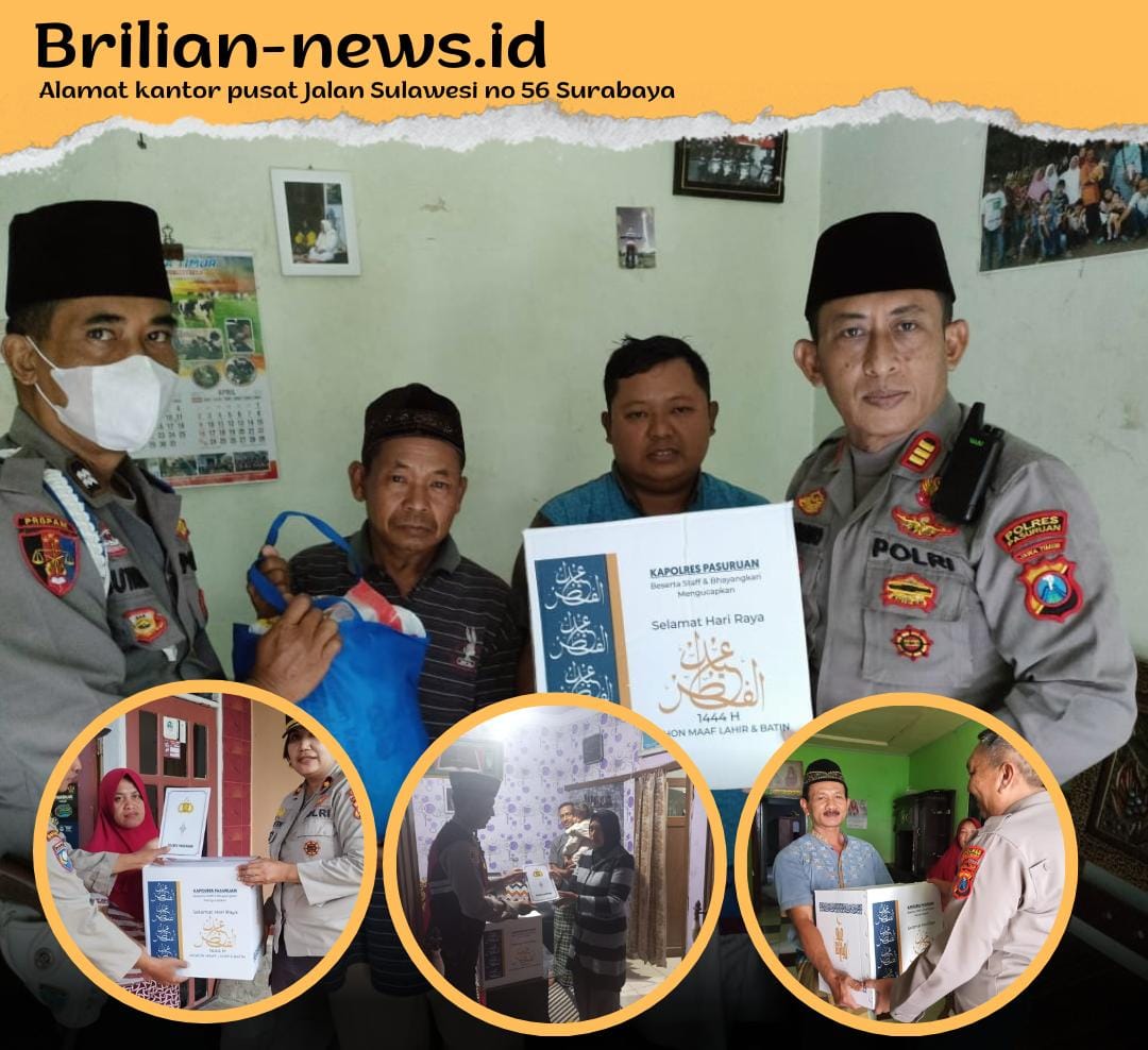 Brilian°PASURUAN – Sebagai bentuk rasa kepedulian dan rasa tali asih dari Kepolisian atas insiden yang terjadi di Stadion Kanjuruhan pada bulan Oktober tahun 2022, Kapolres Pasuruan AKBP Bayu Pratama Gubunagi, S.H., S.I.K., M.Si. melalui Kapolsek jajaran Polres Pasuruan memberikan Bingkisan Lebaran kepada keluarga korban.