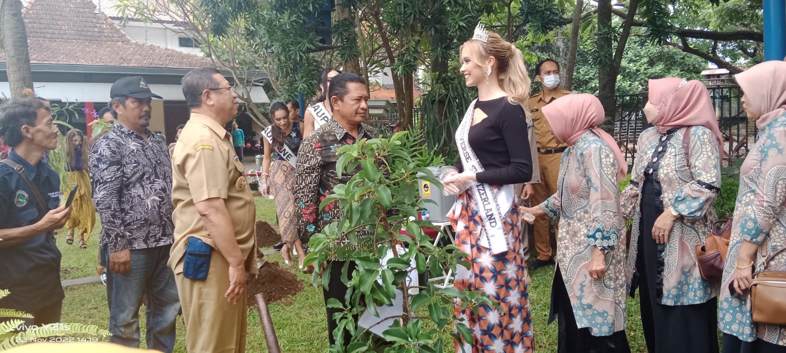 Brilian°Tulungagung – Memperingati hari jadi Tulungagung ke-817 pemerintah Kabupaten Tulungagung mendatangkan Miss Universe Switzerland 2022, bersama Forkompimda melaksanakan kegiatan menanam pohon langka di areal halaman Pendopo Kongas Arum Kusumaning Bongso Tulungagung Jawa Timur, Selasa (22/11/2022).