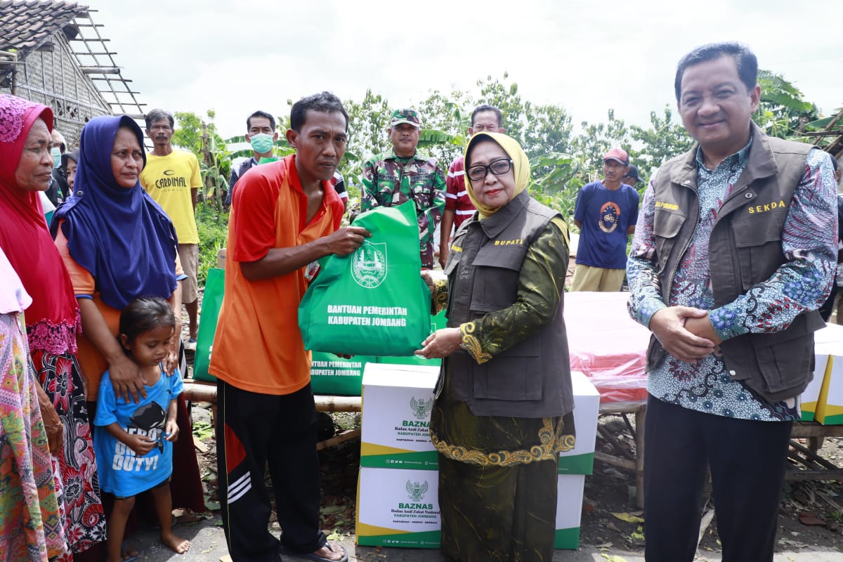 Selain memastikan kondisi keadaan warga terdampak, Bupati dan rombongan juga menyalurkan bantuan dari Pemerintah Kabupaten Jombang yakni dari BPBD Kabupaten Jombang, Dinas Sosial Kabupaten Jombang juga dari Baznas Jombang.