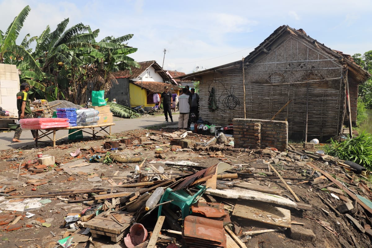 Rinciannya 8 rumah rusak ringan, 1 rumah rusak berat. Yakni yang dihuni oleh Rudi Harianto warga Dsn. Banjardowo Ds. Banjardowo yang tinggal bersama istrinya yang tengah hamil 5 Bulan. Rumah seluas 4×6 ini roboh, rata dengan tanah.