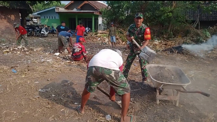Brilian-News.id | Probolinggo,-Kemanunggalan TNI Rakyat begitu nampak saat Serda Firman Efendi Babinsa Koramil 0820/ 03 Leces saat melaksanakan kerja bakti pembersihan lingkungan bersama warga Masyarakat desa kerpangan Kecamatan Leces Kabupaten Probolinggo, Minggu (26/11).