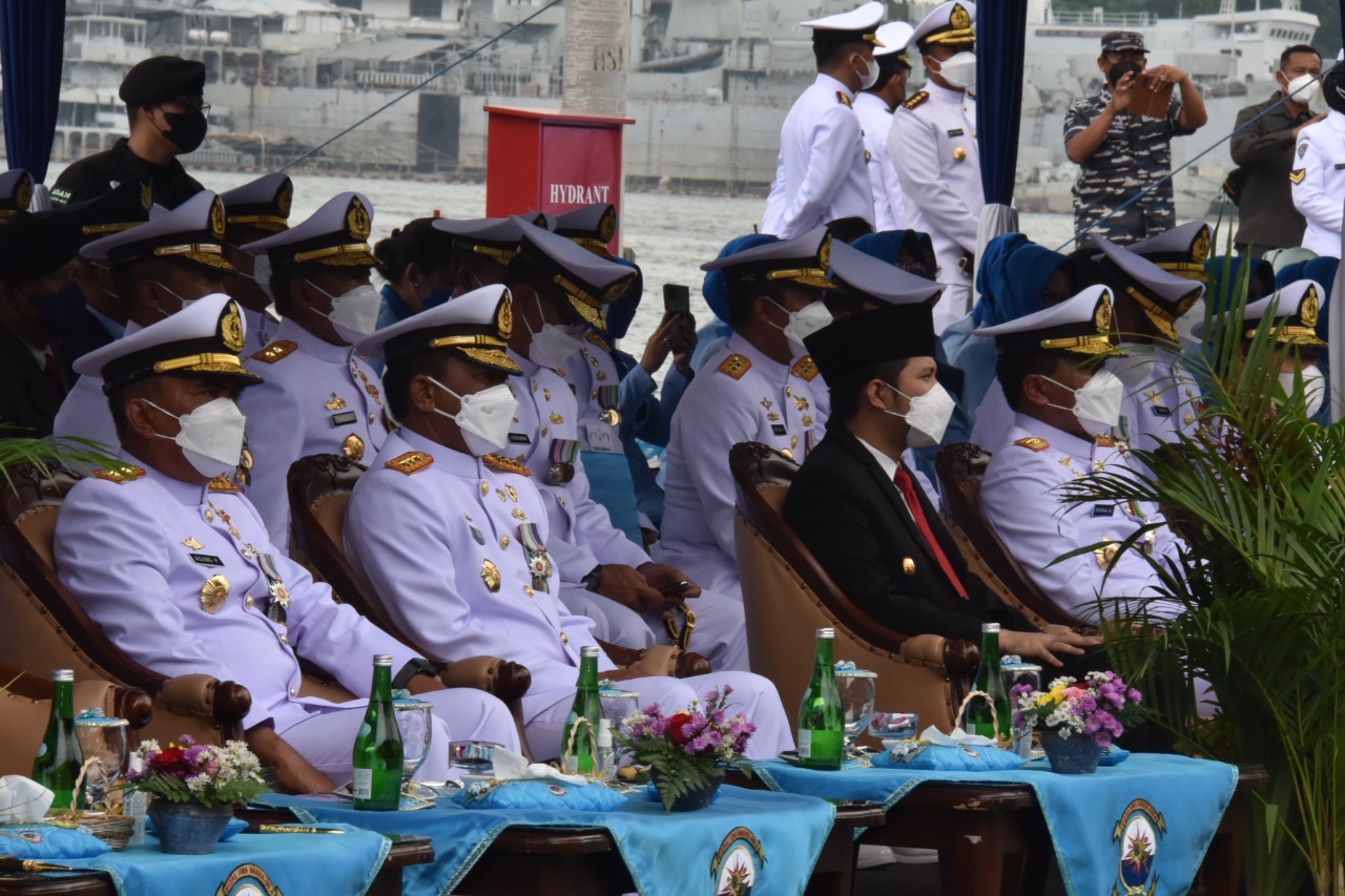 Brilian°Surabaya, — Komandan Komando Pembinaan Doktrin Pendidikan dan Latihan TNI Angkatan laut (Dankodiklatal) Laksamana Madya TNI Nurhidayat didampingi Ketua Gabungan Jalasenastri Kodiklatal Ny. Titi Nurhidayat menghadiri peresmian Monumen KRI Nanggala-402 yang dibangun di area Monumen Ghoravira Madyajala Koarmada II Ujung Surabaya, Sabtu, (15/1/2022).