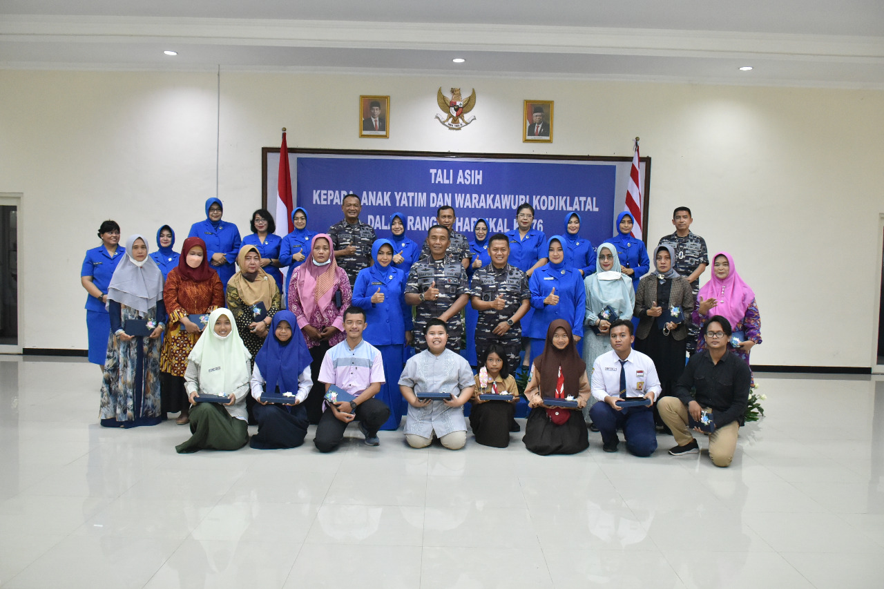Brilian°Surabaya, 23 April 2022,–Jelang peringatan Hari pendidikan TNI Angkatan Laut (Hardikal) ke-76 tahun 2022 pada tanggal 12 Mei 2022 mendatang, Komandan Komando Pembinaan Doktrin Pendidikan dan Latihan TNI Angkatan Laut (Dankodiklatal) Letnan Jenderal TNI Marinir Suhartono, didampingi Ketua Gabungan Jalasenastri Kodiklatal, Ny.Etta Suhartono mengadakan kegiatan sosial berupa pemberian tali asih kepada warakawuri dan anak yatim piatu di lingkungan Kodiklatal, Jumat (22/4).