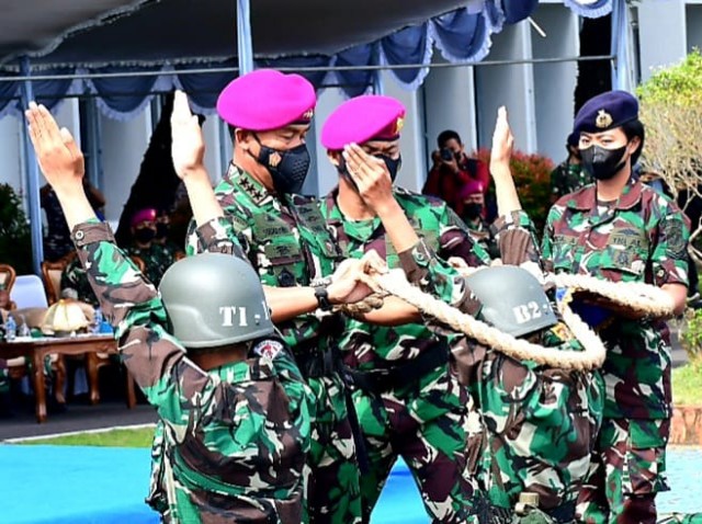Brilian°Makassar,– Komandan Komando Pembinaan Doktrin Pendidikan dan Latihan TNI AL (Dankodiklatal) Letnan Jenderal TNI Marinir Suhartono membuka secara resmi Pendidikan Pertama Bintara (Dikmaba) dan Pendidikan Pertama Tamtama (Dikmata) TNI AL Angkatan XLII Satuan Pendidikan (Satdik) 2 Makassar bertempat di Dermaga Layang, Mako Lantamal VI Makassar, Jumat, (01/04).
