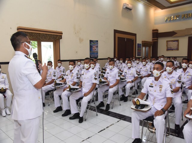 Brilian°Surabaya, ~ Komandan Pusat Pendidikan Kesehatan (Danpusdikkes) Komando Pendidikan Dukungan Umum (Kodikdukum) Komando Pembinaan Doktrin, Pendidikan dan Latihan TNI AL (Kodiklatal) Kolonel Laut (K) drg. Ketut Triwanto, Sp.Ort memberikan pembekalan kepada Siswa Pendidikan Pembentukan Bintara (Diktukba) TNI AL Angkatan LII TA 2021 kejuruan Kesehatan, Senin, (29/11/2021).