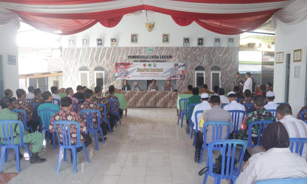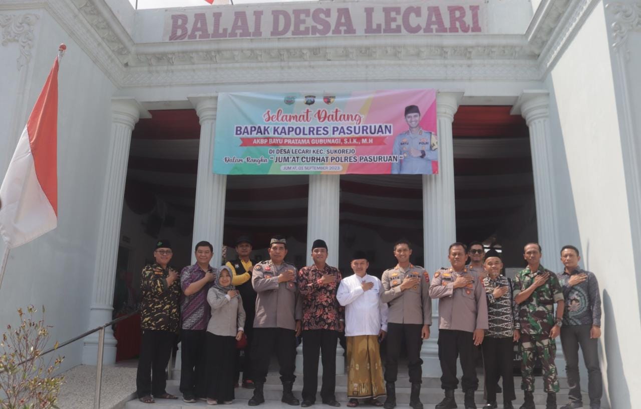 “Kami ucapkan terimakasih kepada Bapak Kapolres Pasuruan beserta rombongan karena sudah bisa hadir dalam acara Jum’at Curhat pagi ini, berkat acara ini menjadikan masyarakat Kecamatan Sukorejo khususnya Desa Lecari bisa mendapatkan Solusi dari setiap permasalahan yang dihadapi di wilayahnya,” ucapnya.