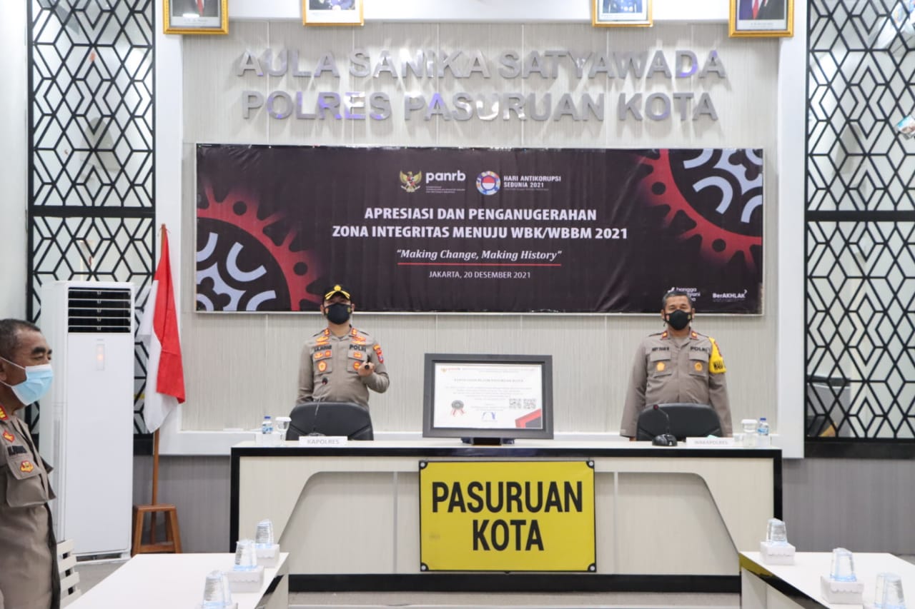 Polres Pasuruan Kota merupakan Polres tipe Kota di Jawa Timur yang satu- satunya mendapatkan penganugerahaan Zona Integritas menuju WBK/WBBM di tahun 2021 ini.