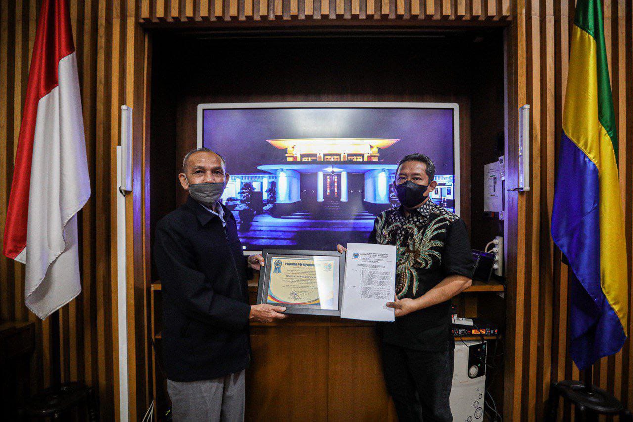 Penghargaan langsung diberikan kepada Wali Kota Bandung, Yana Mulyana oleh Rektor Universitas Langlang Buana, Harry Anwar di Balai Kota Bandung, Jumat 13 Mei 2022.