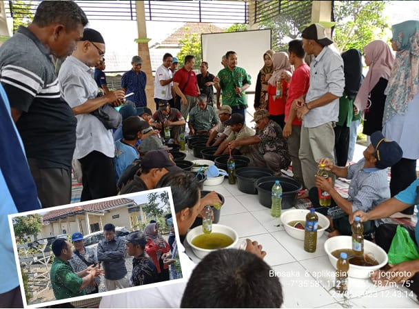 Sebagai upaya untuk lebih memantapkan petani di Kabupaten Jombang dalam pembuatan dan aplikasi Biosaka, Dinas Pertanian menghadirkan secara langsung penemu Biosaka Bapak Muhammad Anshar sebagai narasumber di BPP Jogoroto pada Sabtu 27 Mei 2023. Hadir dalam kegiatan ini Kepala Dinas Pertanian Kabupaten Jombang, Bapak Ir. Much. Rony, MM., Penyuluh Pertanian Lapangan/PPL dan petani di sekitar Jogoroto juga grup petani pegiat Biosaka Kabupaten Jombang yang telah mengaplikasikan teknologi Biosaka.