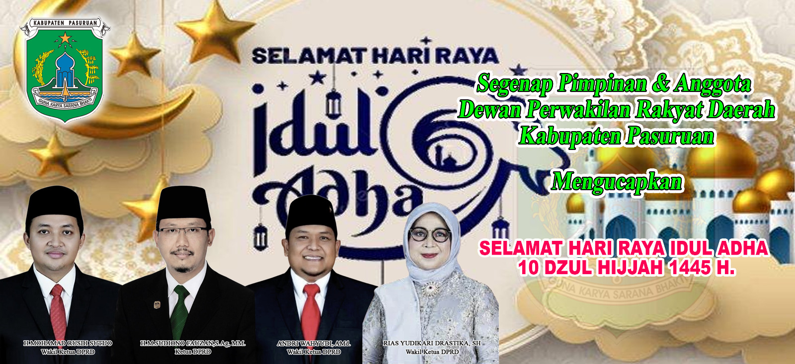 DPRD Kabupaten Pasuruan Mengucapkan Selamat Idul Adha 1445 H admin – Nasional Minggu, 16 Jun 2024 09:23 WIB Pos terkaitPolres Bondowoso Bongkar Penyalahgunaan BBM Bersubsidi, Dua Pelaku Terancam 6 Tahun PenjaraDatangi Kantor DPP PKS di Jakarta, AMI Desak Presiden PKS Evaluasi Abu Bakar Al HabsyiResmi Dilaporkan ke Presiden, AMI Seret Abu Bakar Al Habsyi Lewat Setneg, PKS Didesak Bertindak TegasHari Kebangkitan Nasional Jadi Panggung Aksi Ojol, Presidium GRANAT Jatim Siapkan Aksi Besar 20 Mei 0