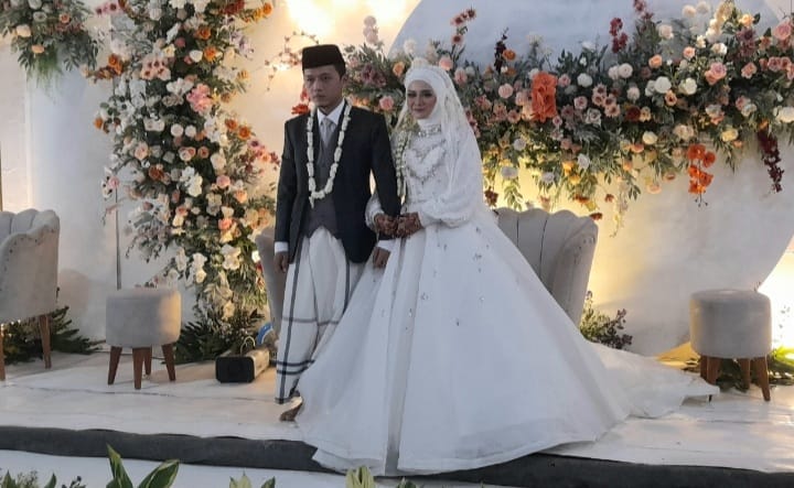 Akad nikah diatas panggung dipimpin langsung oleh Dr KH Abdul Rokhim SH MH dengan disaksikan sejumlah tokoh serta keluarga dari dua belah pihak yang sedang berbahagia tersebut.
