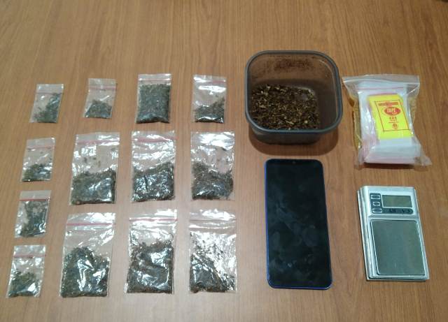 Dalam penggeledahan yang dipimpin Kasat Narkoba Kompol Agus Susanto juga ditemukan satu buah timbangan digital, satu bungkus plastik klip berisikan beberapa plastik klip kosong dan satu buah handphone.