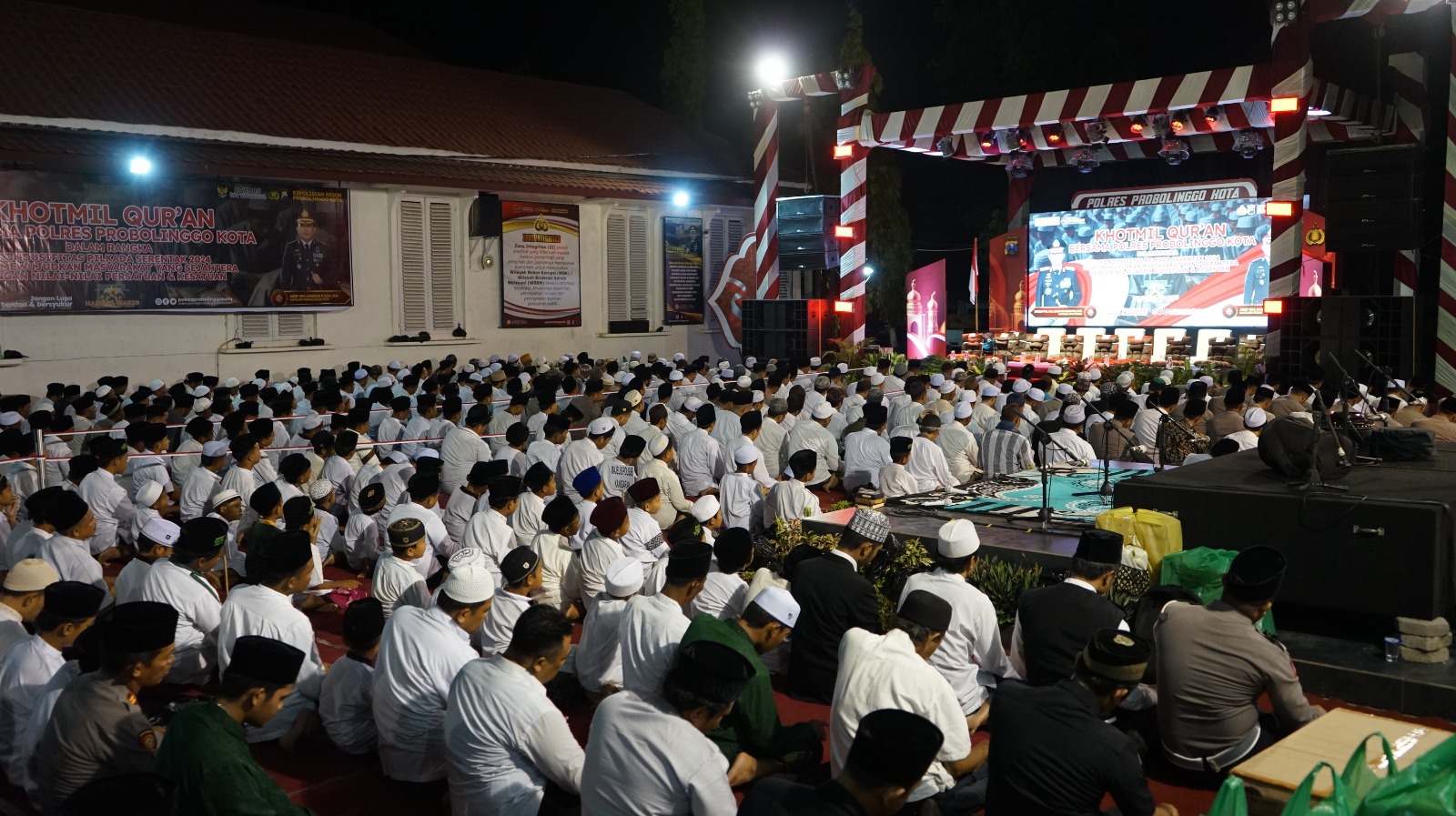 Bertempat di Mapolres, kegiatan ini dihadiri oleh PJ Walikota Probolinggo, Taufik Kurniawan, S.Sos, PJ Bupati Probolinggo Diwakil iAsisten II Pemkab Probolinggo, Ir. H. Ahmad Hasim Ashari M.M, Sekda Kota Probolinggo, Drg. Ninik Ira Wibawati, Dandim 0820 Probolinggo, Letkol Arm Heri Budiasto, S.I.P, M.H, M.Tr.(han), Ketua PN Probolinggo, Melina Nawang Wulan, S.H, M.H, Ketua PA Probolinggo, Ruslan Saleh, M.Ag, M.H, Pengasuh PP Raudlatul Mittaqin, K.H Ahmad Tajul Mufakir, Ketua PCNU Kota Probolinggo, M. Arbai Hasan, Ketua Muhammadiyah Kota Probolinggo diwakili, M. Azizi serta perwakilan para santri dan hafids Qur’an di wilayah hukum Polres Probolinggo Kota.