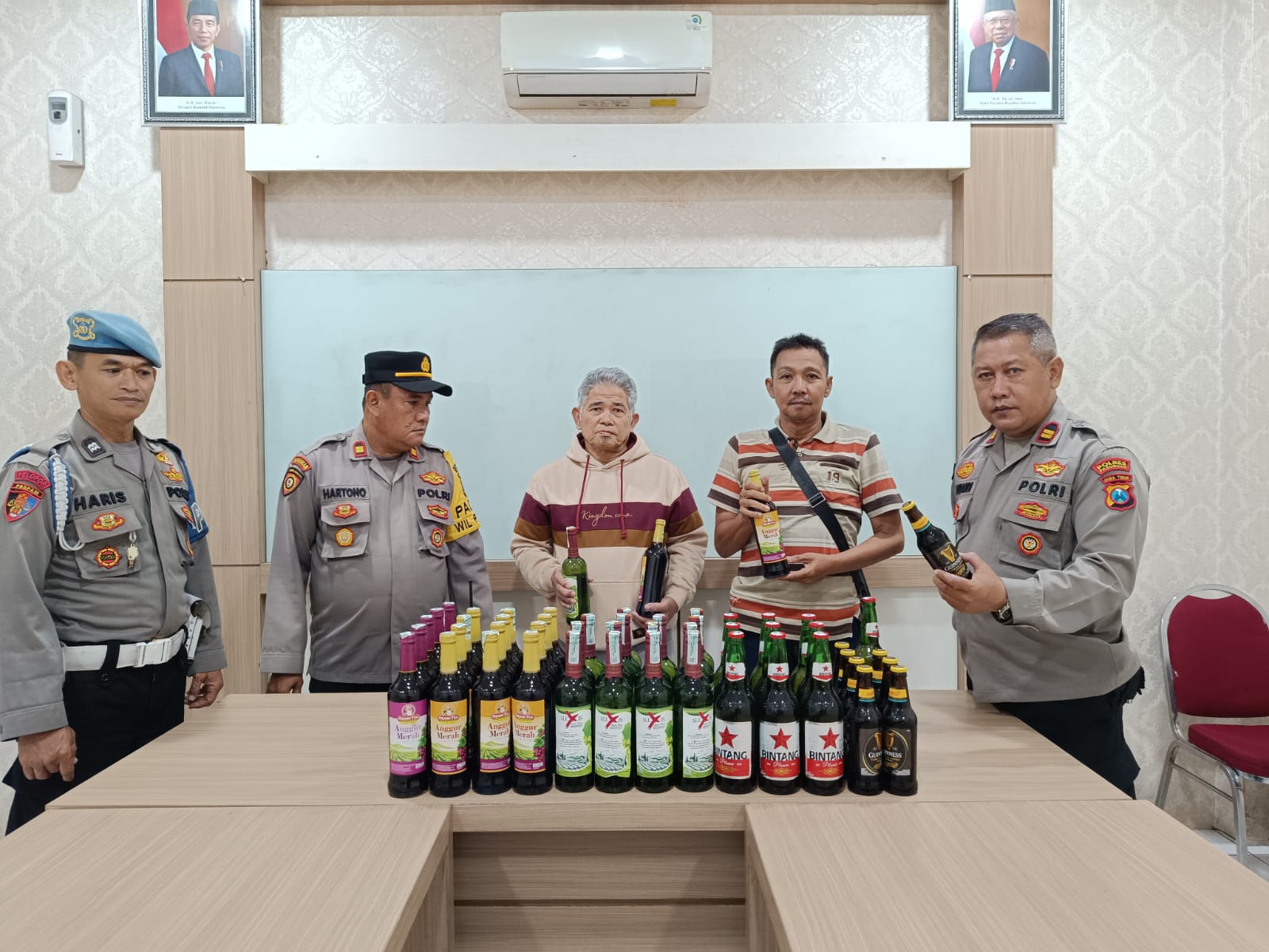 “Adapun barang bukti yang disita yakni, 19 (sembilan belas) Botol Miras Anggur merah, 15 (lima belas) Botol Miras Alexis, 10 (sepuluh) Botol miras Bir Bintang, dan 8 (delapan) Botol Miras guinnes hitam,” ucap Kapolsek.