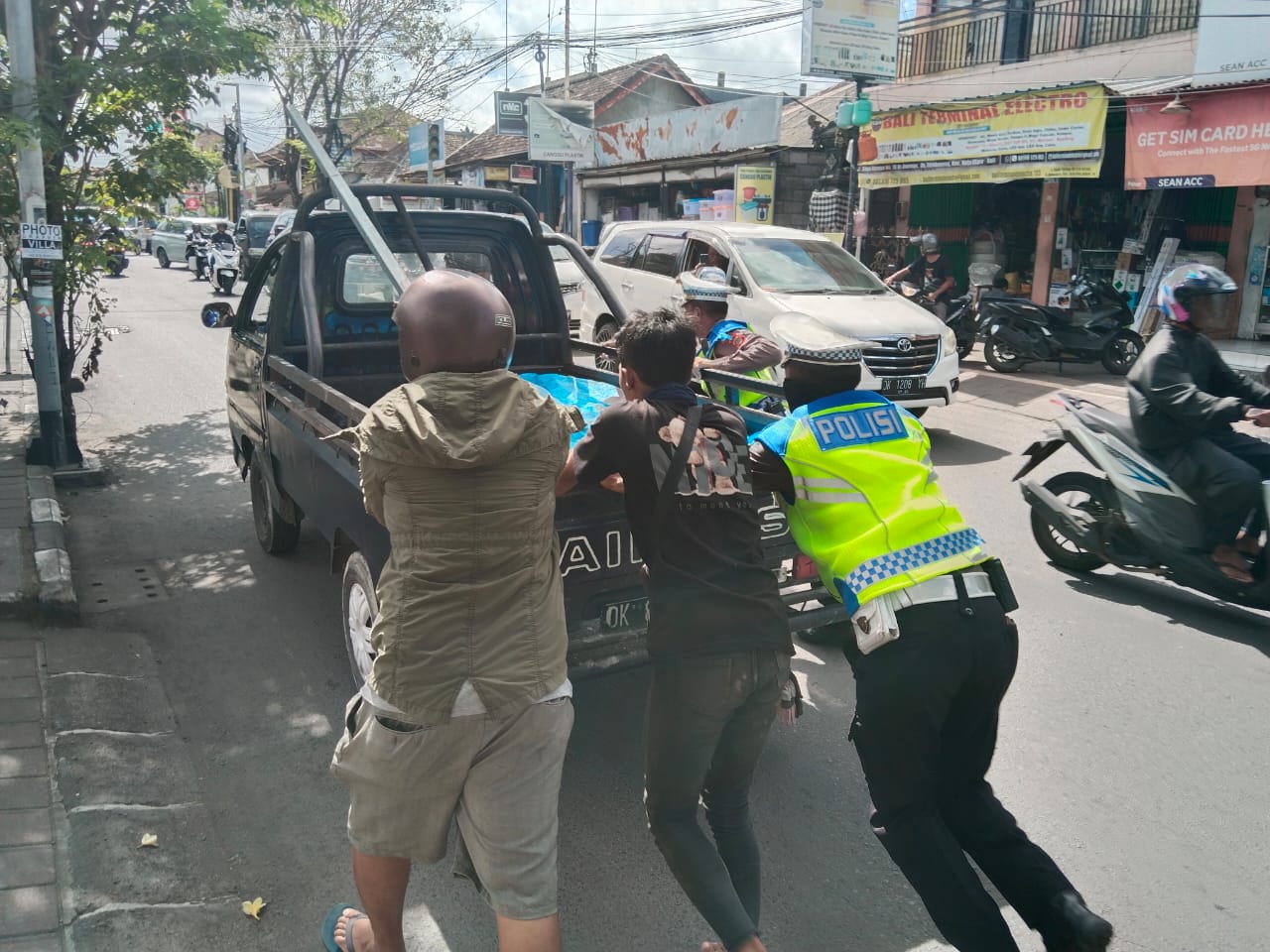 Tanpa pikir panjang Personil Lantas Polsek Kuta Utara di bawah kendali Ipda Nyoman Suryawan di bantu masyarakat langsung mengevakuasi Mobil Pick up warna hitam DK 8457. E yang mogok akibat mesin rusak di dorong ke pinggir jalan raya agar pengendara lain tidak terganggu.