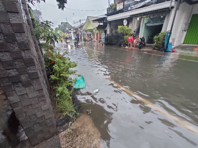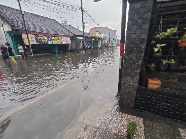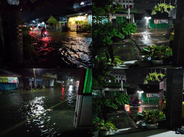 “Gak tau banjir dalan iki, mek saiki sampek koyok ngene (bahasa jawa/red) jalan ini tidak pernah banjir sampai kayak begini,” kata warga yang sambil tertawa.