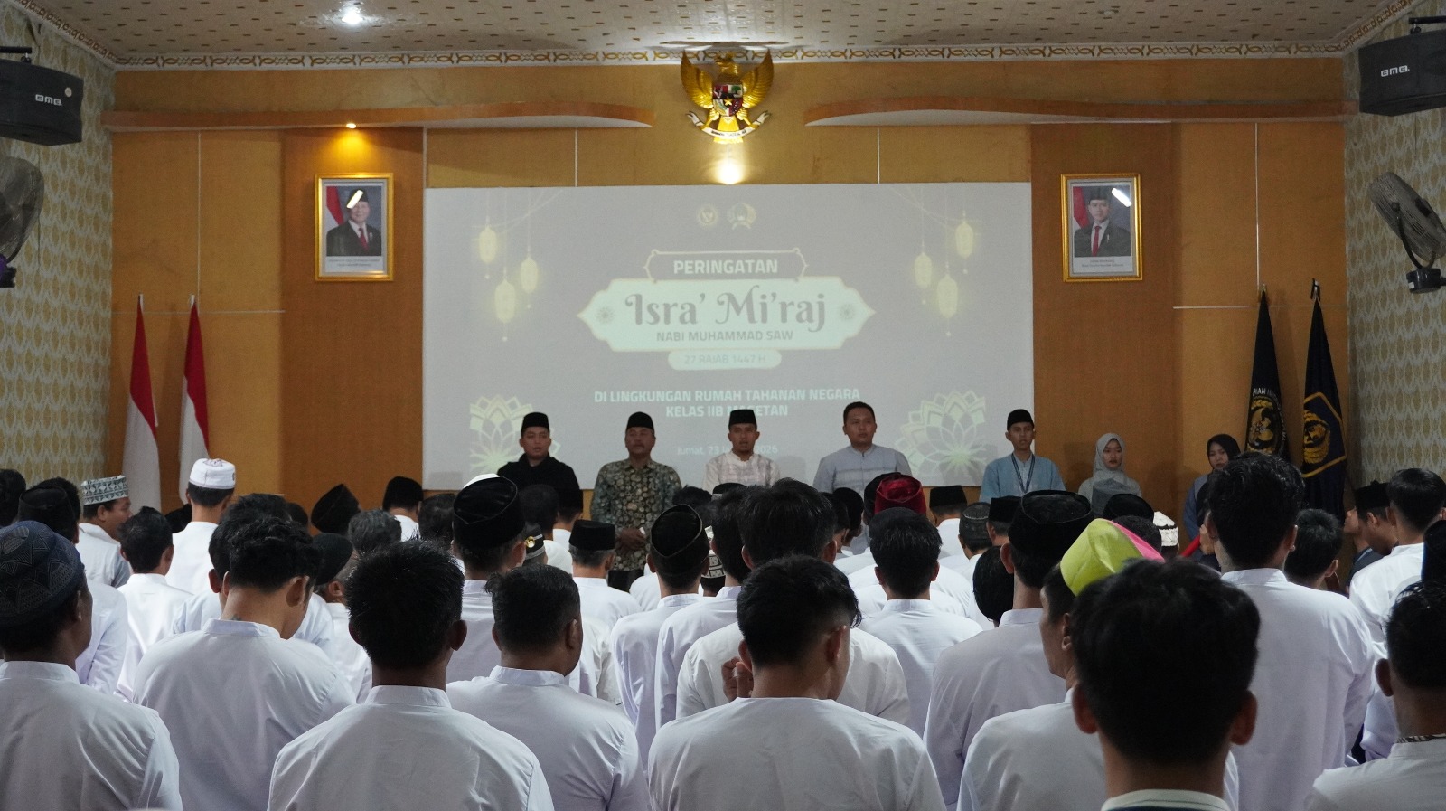 Brilian-news.id | MAGETAN – Rutan Kelas IIB Magetan Kantor Wilayah Direktorat Jenderal Pemasyarakatan Jawa Timur menggelar kegiatan peringatan Isra Mi’raj Nabi Muhammad SAW pada Jumat, (23/1), bertempat di aula Rutan Magetan. Kegiatan ini diikuti oleh seluruh petugas, peserta magang, serta warga binaan dalam suasana yang khidmat dan penuh kebersamaan.