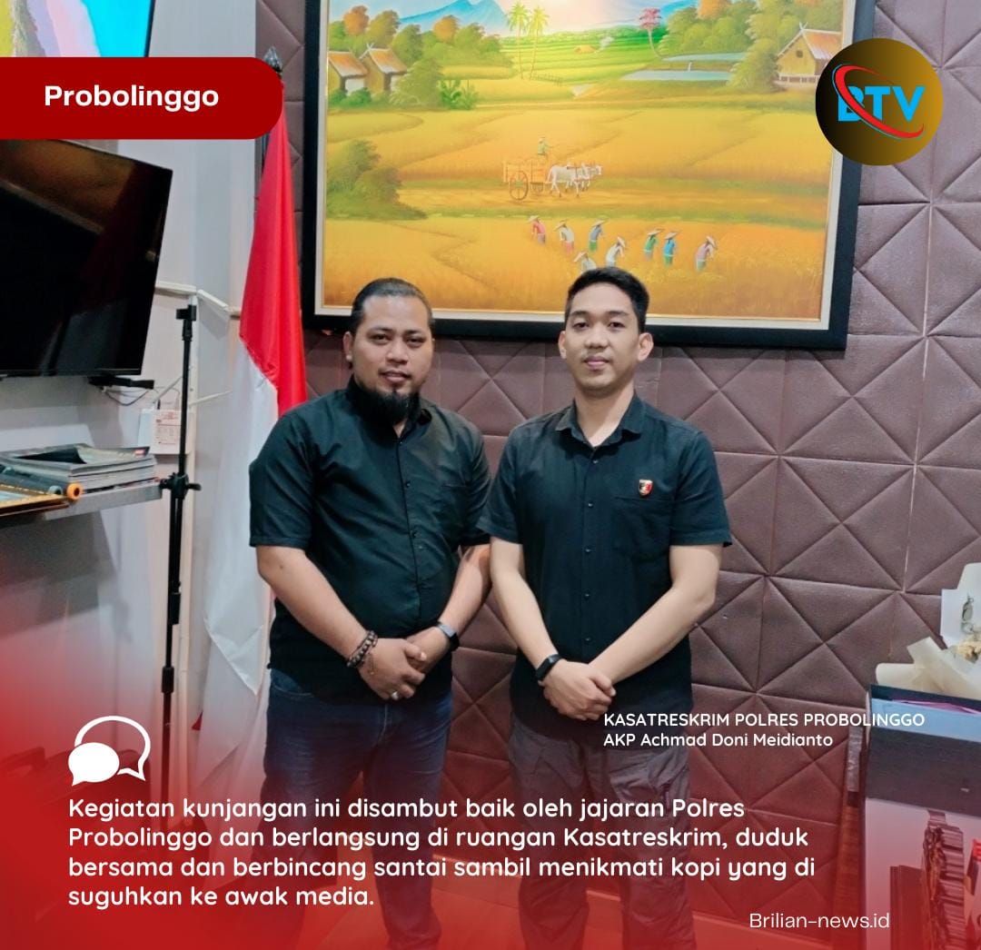 Brilian-news.id | Probolinggo – Menjelang 1 Muharrom atau Tahun Baru Islam yang ke 1445 Hijriyah. Koordinator Liputan Jawa timur, media brilian-news.id datang ke Probolinggo yang dikenal dengan daerah tapal kuda dan berkunjung ke Kasatreskrim Polres Probolinggo guna mempererat tali silaturahmi serta memupuk kemitraan yang selama ini sudah terjalin dengan baik. Selasa (18/07/2023)