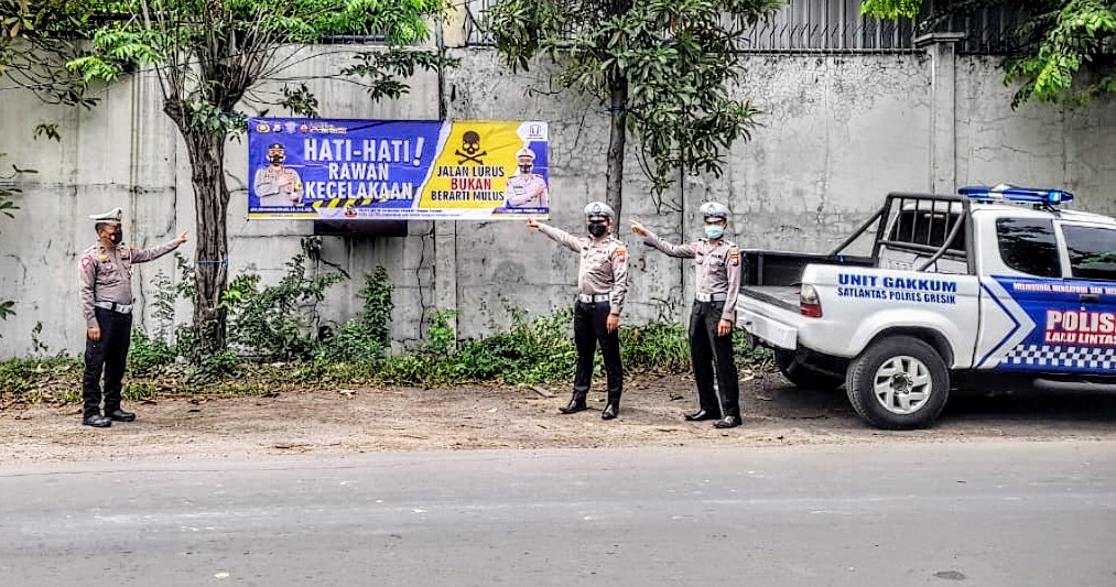 Kasatlantas menambahkan, pemasangan spanduk maupun baliho himbauan telah kita pasang di beberapa lokasi titik rawan kecelakaan di Wilayah Hukum Polres Gresik
