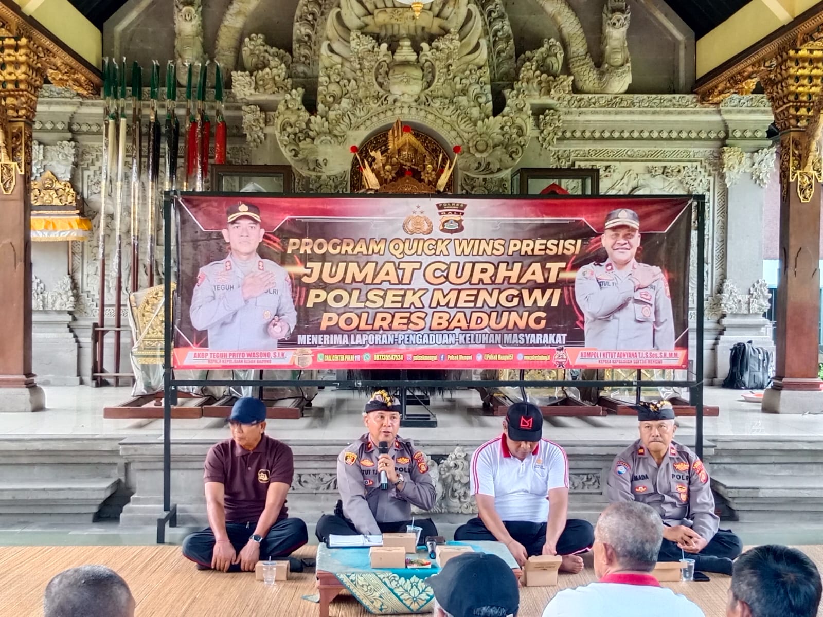 Kegiatan tersebut berlangsung saat Polsek Mengwi menggelar Jumat Curhat di balai panjang Puri Ageng Mengwi lingkungan Banjar Lebah Pangkung, Desa Mengwi, Kecamatan Mengwi, Kabupaten Badung. Jumat (26/4/2024) pukul 08.00 Wita.