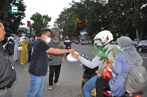 Tak kurang dari 300 paket iftar berisi nasi siap saji serta air mineral dibagikan kepada warga dan pengendara di Jalan Ahmad Yani, Kota Bandung tepatnya di depan Sekretariat PWI Kota Bandung. (*)