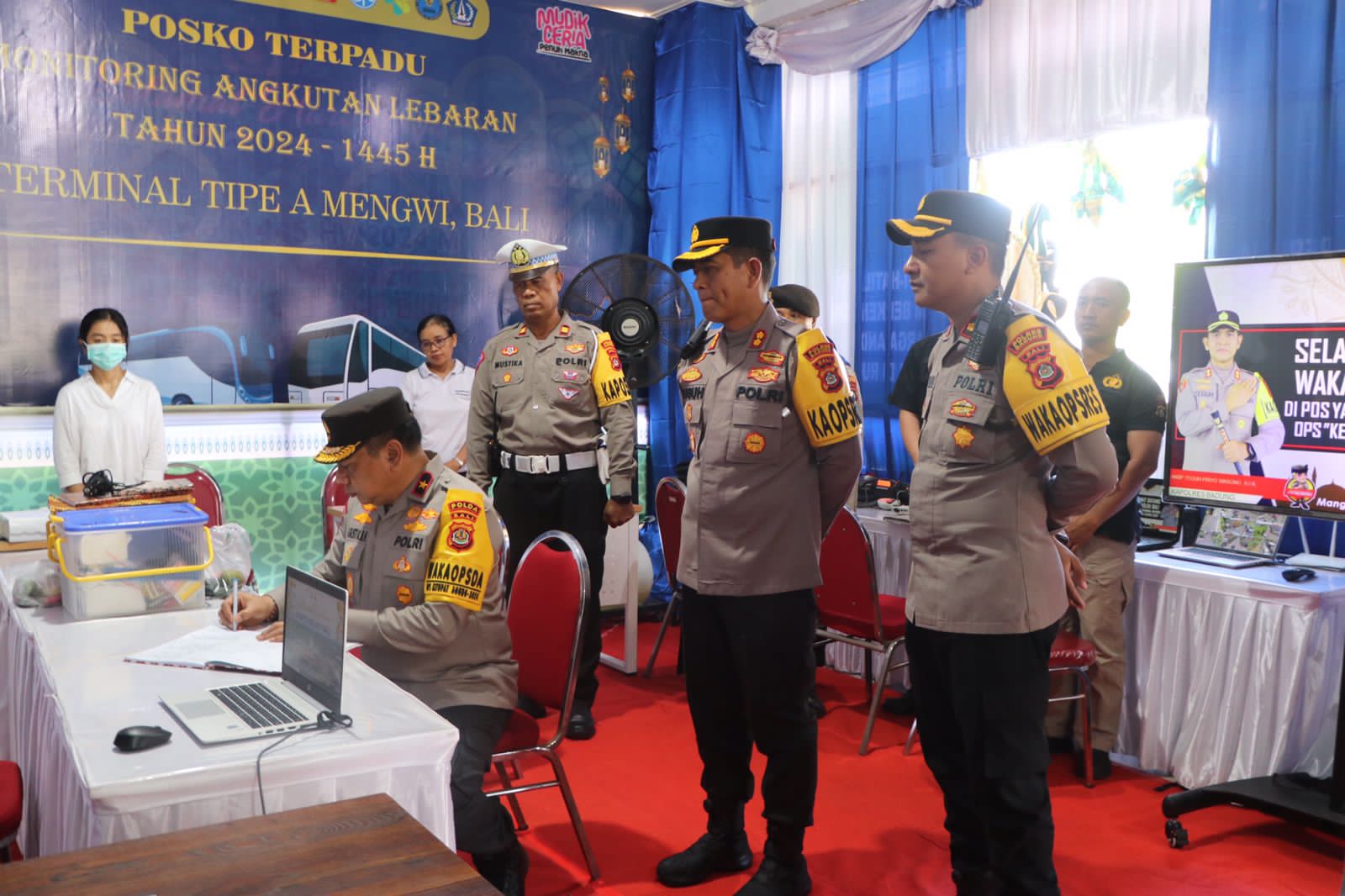 Brilian-news.id | BALI – Kepala Kepolisian Resor Badung AKBP Teguh Priyo Wasono, SIK. mendampingi Wakapolda Bali Brigjen. Pol. Dr. I Gusti Kade Budhi Harryarsana, S.I.K., S.H., M.Hum., melaksanakan pengecekan / Pemantauan Pengamanan dan Situasi dalam rangka Operasi Ketupat Agung 2024 pos pelayanan (posyan) di Terminal Type A Mengwi Desa Mengwitani Kecamatan Mengwi Kabupaten Badung Bali, Minggu (7/4) siang pukul 12.00 Wita.