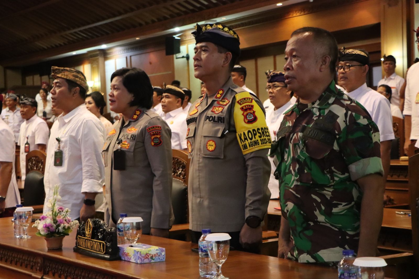 Brilian-news.id | Bali – Kepala Kepolisian Resor Badung AKBP Teguh Priyo Wasono, SIK. menghadiri Rapat Paripurna DPRD Kab. Badung dalam rangka memperingati Hari Ulang Tahun ke-14 Ibu Kota Kab. Badung yang dipimpin oleh Ketua DPRD Kab. Badung Dr. Drs. I Putu Parwata Maelena Kusuma, M.M. di Ruang Sidang Utama Gosana Sekretariat Gedung DPRD Puspem Kab. Badung Jl. Raya Sempidi Kecamatan Mengwi Kabupaten Badung, Bali. Kamis (16/11/2023) pagi pukul 08.15 Wita.