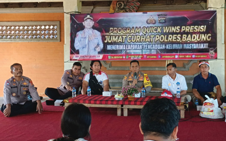 Brilian-news.id | Bali – Kapolres Badung AKBP Teguh Priyo Wasono, SIK, melaksanakan Jumat Curhat di wαntílαn Pura Dalem Banjar Cabe, Desa Darmasaba, Kecamatan Abiansemal, Kabupaten Badung, Bali. Jumat pagi (01/09). Jumat Curhat ini merupakan Program Quick Wins Presisi Polres Badung dalam rangka menerima laporan pengaduan atau Keluhan Masyarakat, yang nantinya akan dijadikan bahan untuk mengevaluasi tugas-tugas Polri terutama Polres Badung kedepannya serta memberikan upaya penyelesaian/solusi setiap permasalahan yang dihadapi oleh masyarakat.