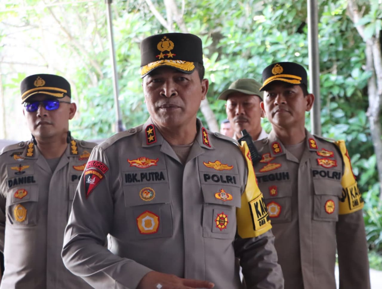 Tampak hadir mendampingi Kapolda Bali dalam kunjungan tersebut yakni Karo Rena Polda Bali Kombes Pol. Daneil Widya Mucharam, S.I.K., M.P.A, Dir Lantas Polda Bali Kombes. Pol. Ruminio Ardano, S.I.K, Kabid Propam Polda Bali Kombes Pol. I Ketut Agus Kusmayadi, S.I.K., S.H dan Korspripim Kapolda Bali.