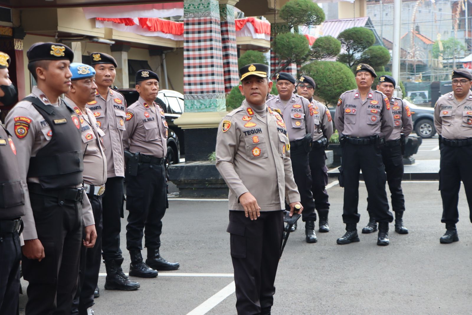 “Hari ini saya cek kelengkapan perorangan seperti borgol, tongkat T dan Pluit, baton stick seluruhnya lengkap terima kasih,” Kata AKBP Teguh Priyo Wasono kepada anggota Satsamapta Polres Badung.