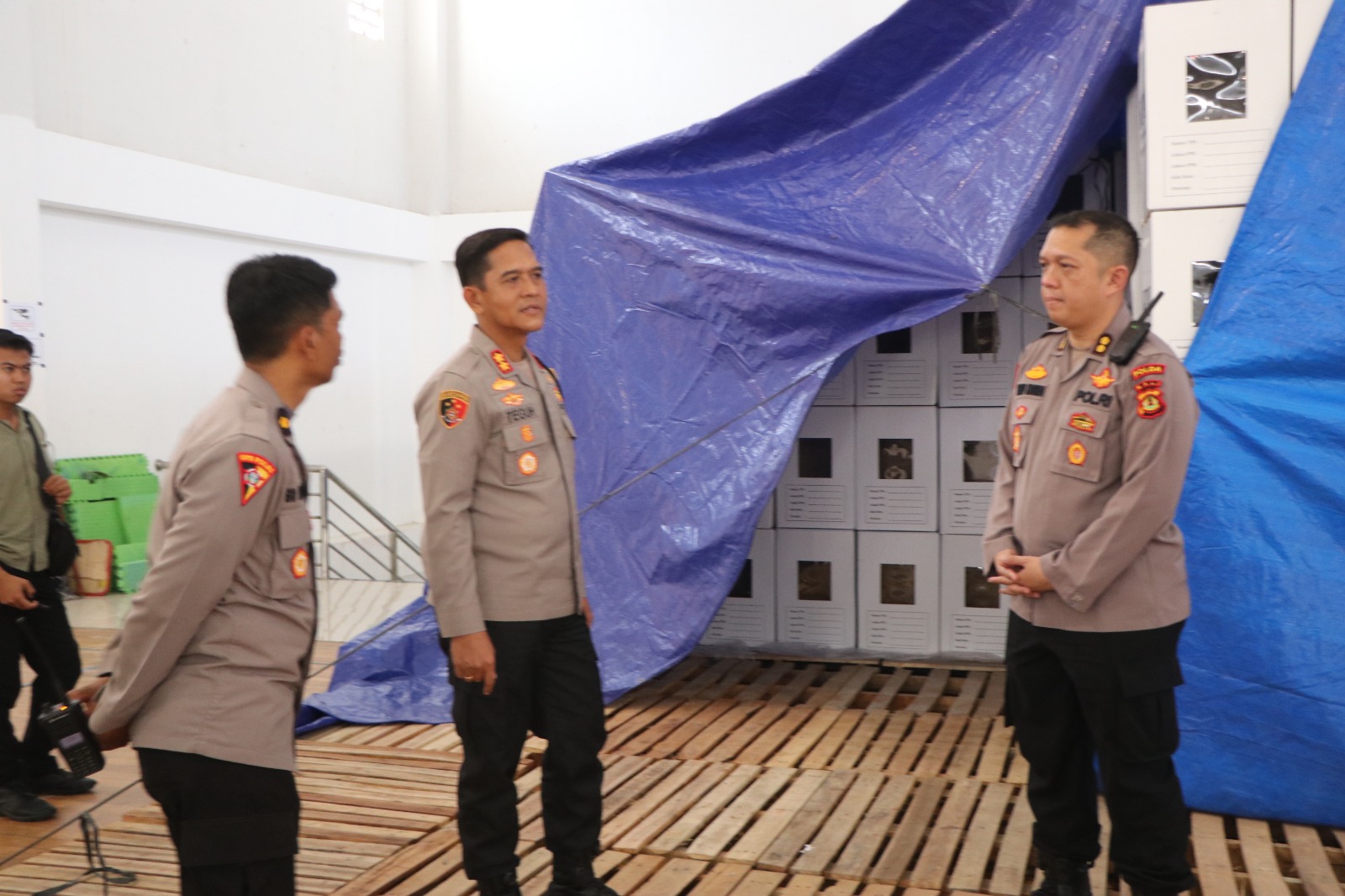 Brilian-news.id | BALI – Dalam rangka memastikan kelengkapan logistik Pilkada 2024 dan keamanan proses pendistribusian logistik ke masing – masing PPS Desa/Kelurahan menjelang tahapan pemungutan dan penghitungan suara pada Pilkada 2024, Kapolres Badung, AKBP Teguh Priyo Wasono, S.IK., dampingi Waka Pamatwil Polda Bali, AKBP Ricko Abdillah Andang Taruna, S.H., S.I.K., M.H., M.M., melakukan pengecekan logistik pemilu di Gudang KPU Kabupaten Badung yang berlokasi di GOR Basket, Desa Sading, Kecamatan Mengwi, Kabupaten Badung, Jumat (4/10/24) siang pukul 14.30 wita. Kegiatan ini bertujuan untuk memastikan kesiapan logistik menjelang pelaksanaan pemilihan daerahyang akan datang.