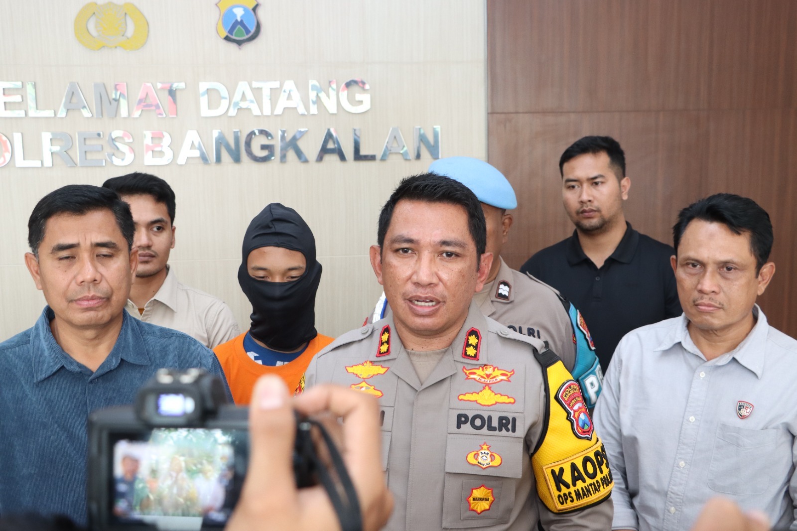 Kapolres Bangkalan AKBP Febri Isman Jaya, S.H., S.I.K., M.I.K. merilis langsung identitas pelaku penganiayaan yang berinisial AF (20 tahun) pada Selasa siang ini (24/09). AF merupakan mahasiswa UTM yang berasal dari Kecamatan Creme, kabupaten Gresik.