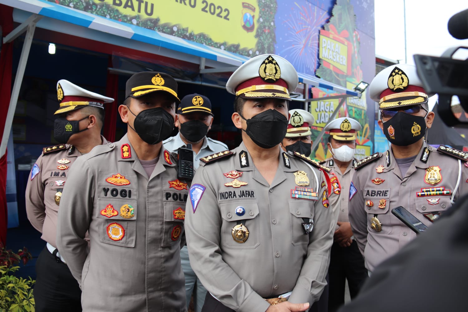 Polres Batu – Tim Perwira Pengamat Wilayah (Pamatwil) Korps Lalu Lintas (Korlantas) Mabes Polri dipimpin oleh KBP Indra Ja’far melaksanakan peninjauan Pos Pelayanan Alun-alun Kota Wisata Batu terkait penerapan Protokol Kesehatan di Jalan Gajah Mada Batu, Senin (27/12/2021).