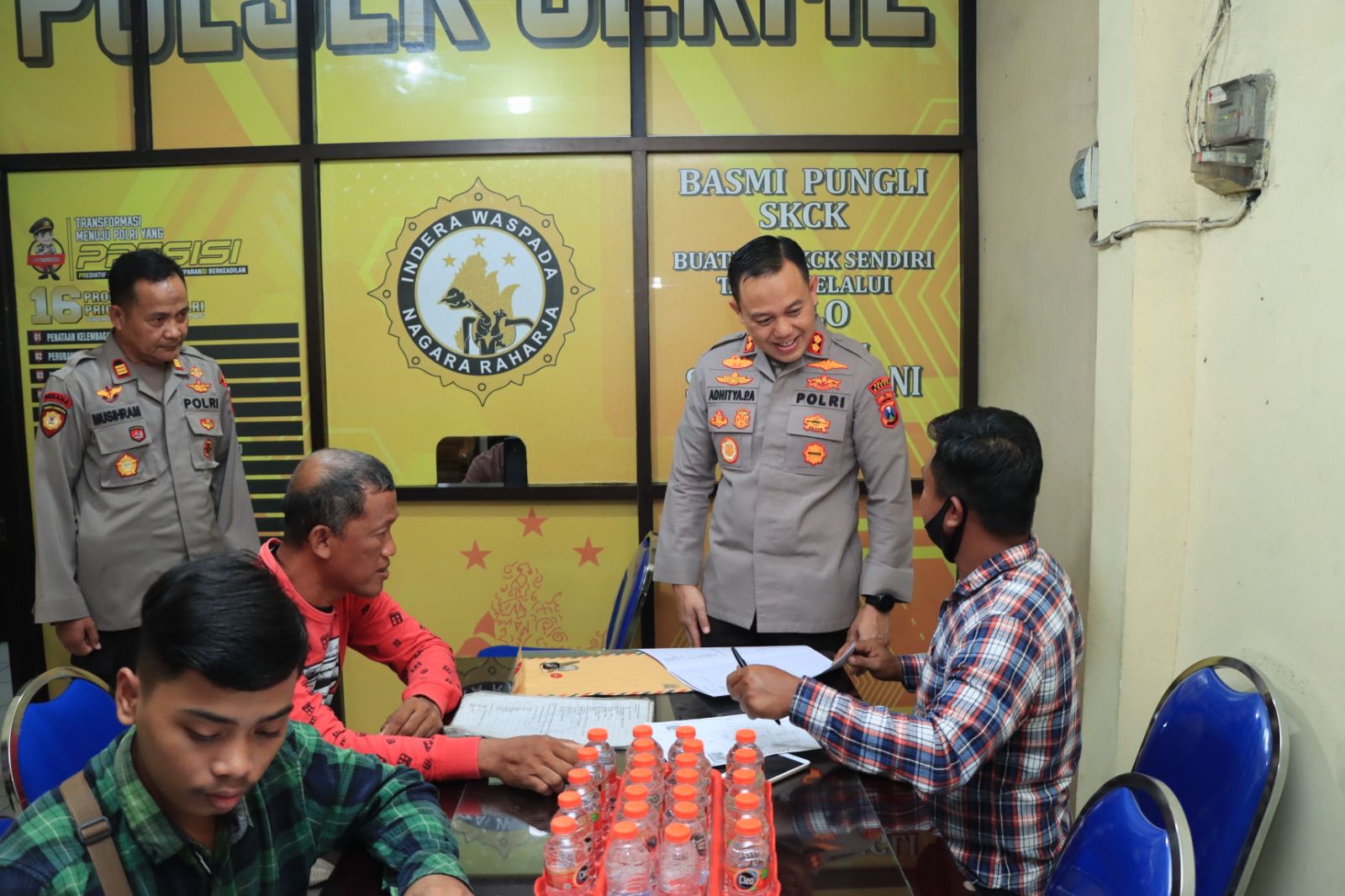 Kapolres Gresik AKBP Adhitya Panji Anom. S.I.K didampingi Wakapolres Gresik Kompol Erika Purwana Putra,SIK. MH, Kabaglog Kompol Nur Amin, SH, Kabag SDM Kompol Dedik Winardi,SH, Kasat Lantas AKP Agung Fitransyah, SIK MH, Kasat Polairud AKP Poerlaksono, Kanit Regident Iptu Mega Satria Tama.