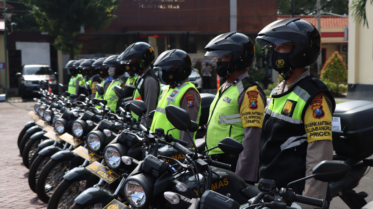 Brilian°Pasuruan – Kapolres Pasuruan AKBP Erick Frendriz, S.I.K., M.Si. memberikan Penghargaan/Reward kepada anggota Polres Pasuruan yang berprestasi dan penyerahan Kendaraan Bermotor (Ranmor) Dinas Roda Dua kepada anggota perwakilan penerima, dilaksanakan di Lapangan Sarja Arya Racana Polres Pasuruan, Senin (22/11/2021).