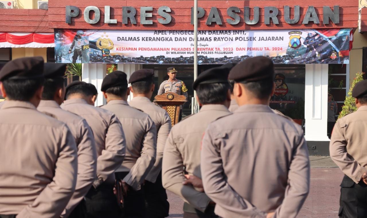 Kapolres Pasuruan AKBP Bayu Pratama Gubunagi, S.H., S.I.K., M.Si selaku Inspektur Upacara, dalam amanatnya mengatakan bahwa, “Apel ini bertujuan untuk mengecek kembali kesiapan Personil Dalmas sebelum diterjunkan untuk melaksanakan pengamanan Pilkades Serentak 2023 dan pelaksanaan Pemilu 2024 di wilayah hukum Polres Pasuruan. Selain itu juga dilakukan latihan Dalmas untuk mengoptimalkan kekuatan personil saat ditugaskan di lapangan nantinya,” ungkap Kapolres.