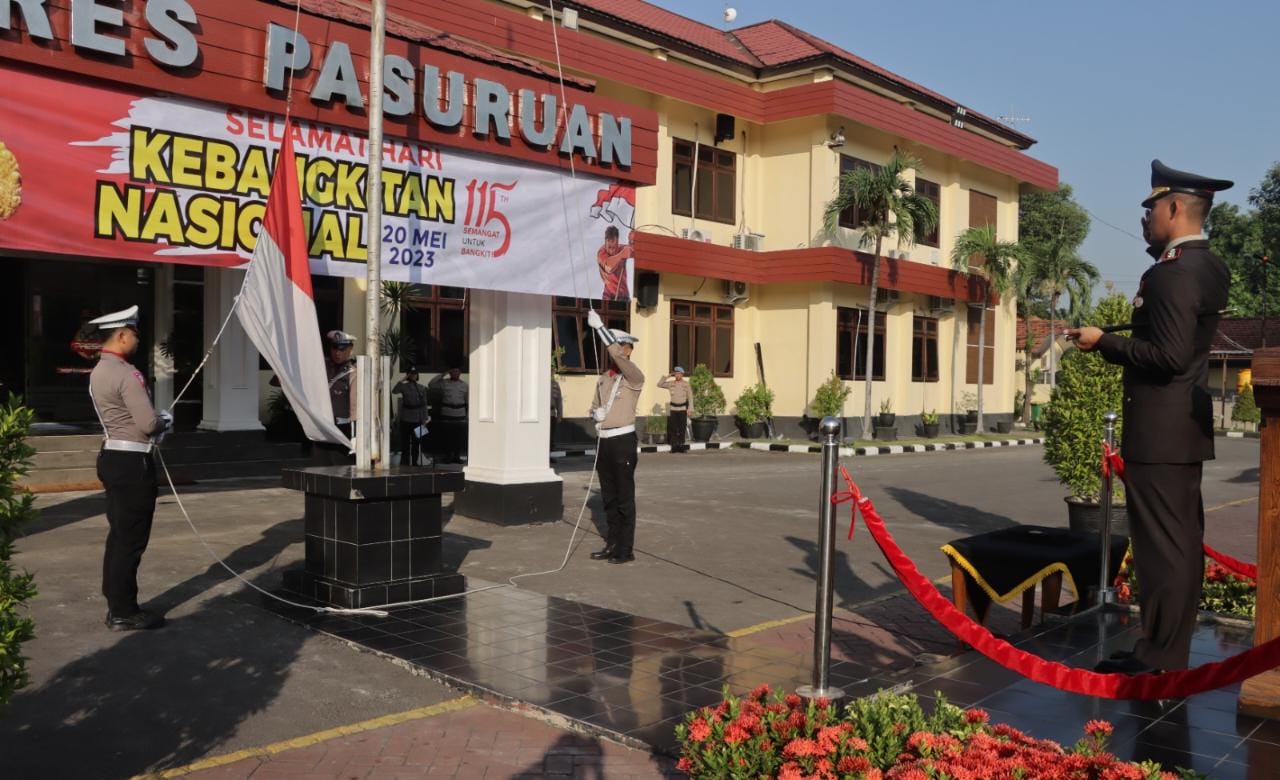 Polres Pasuruan melaksanakan upacara bendera Hari Kebangkitan Nasional Ke 115 ini dipimpin langsung oleh Kapolres Pasuruan AKBP Bayu Pratama Gubunagi, S.H., S.I.K., M.Si. yang dihadiri oleh Pejabat Utama (PJU) Polres Pasuruan, Kapolsek Jajaran, Perwira Polres Pasuruan, seluruh personil dan ASN Polres Pasuruan. Pelaksanaan upacara yang dilaksanakan berlangsung secara khidmat.