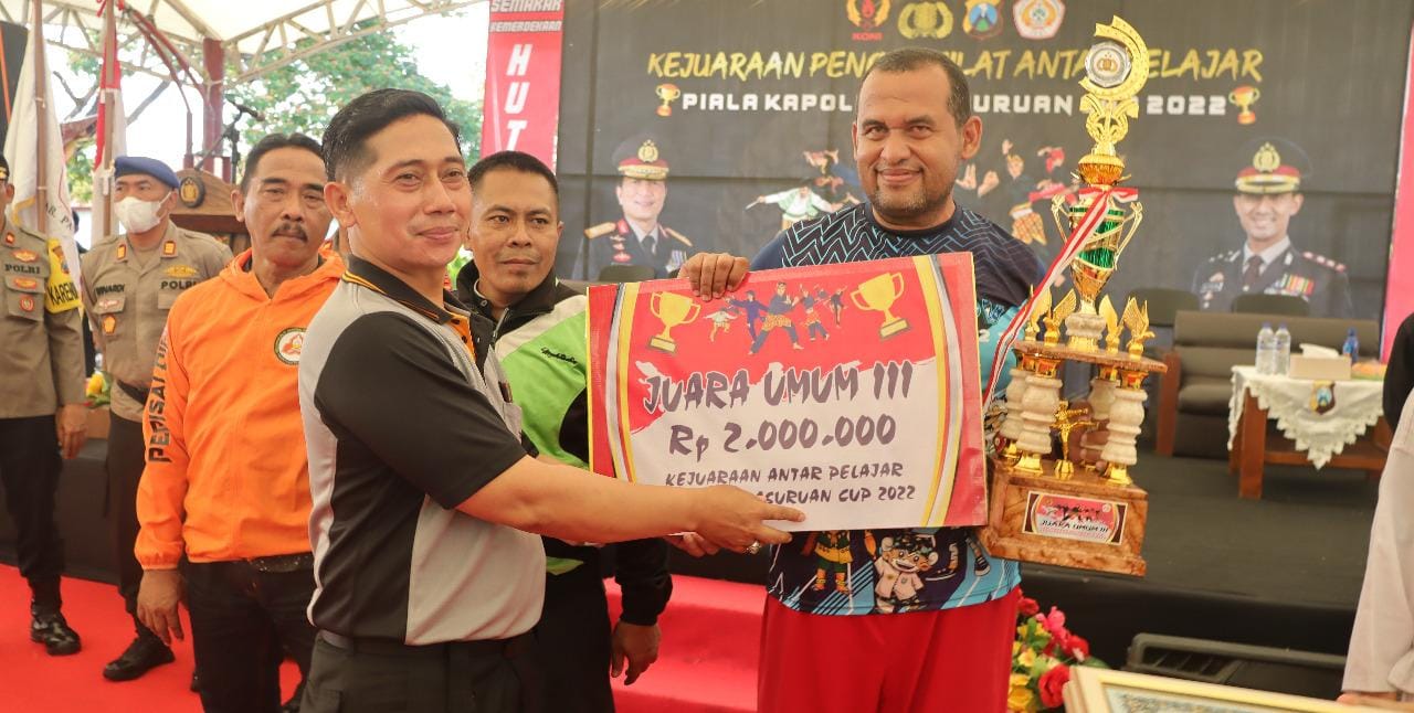 Brilian°PASURUAN – Kapolres Pasuruan AKBP Bayu Pratama Gubunagi, S.H., S.I.K., M.Si. resmi menutup Kejuaraan Pencak Silat Antar Pelajar Kapolres Cup 2022 yang digelar di Aula Bang Kodir, Kecamatan Bangil, Kabupaten Pasuruan resmi berakhir, Selasa (16/08/2022).