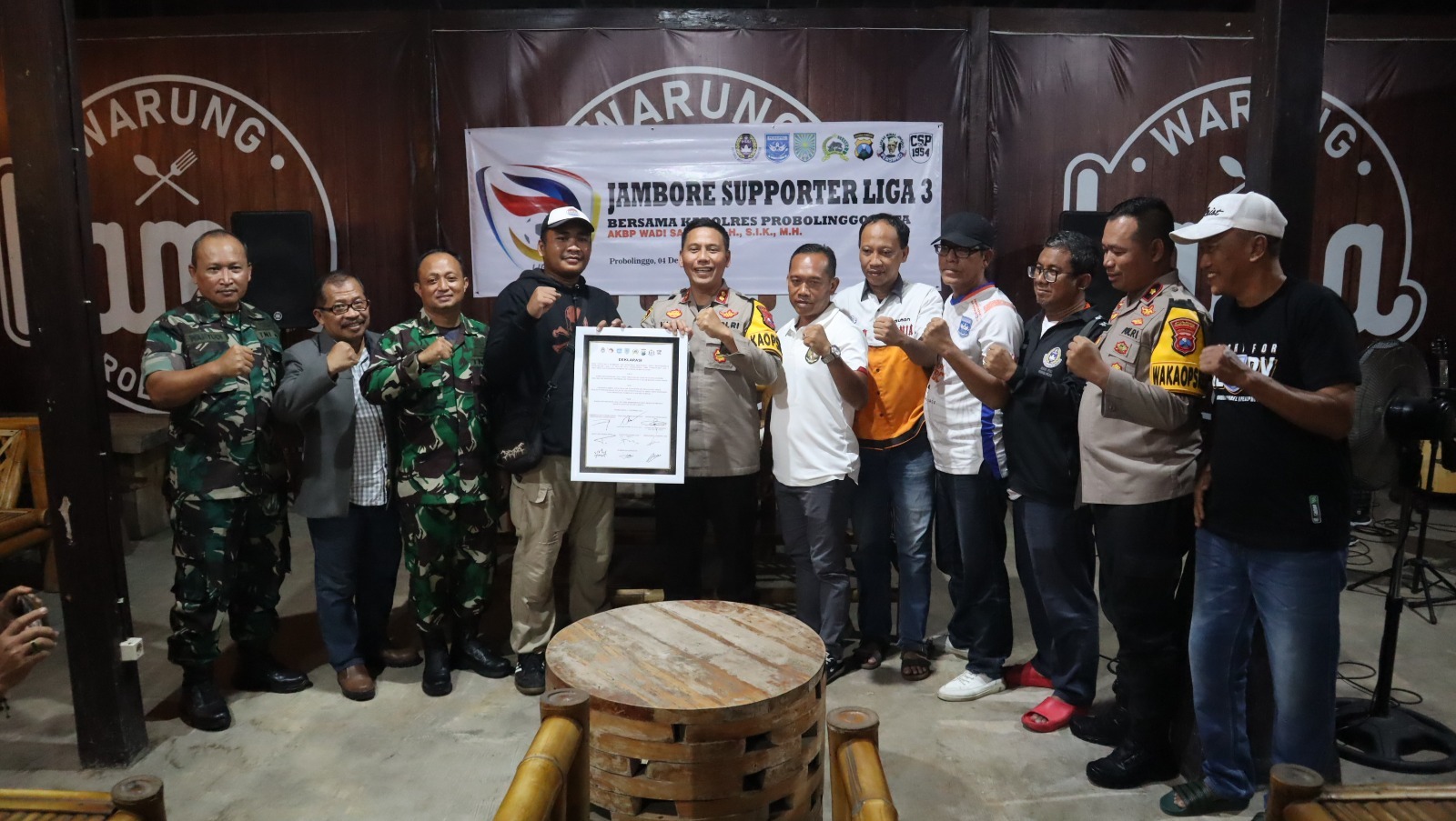 Brilian-News.id | Probolinggo,-Jelang digelarnya Liga 3 PSSI zona Jawa Timur, Polres Probolinggo Kota menggelar Jambore Suporter. Acara yang digelar di Warung KAMA PPP Mayangan Probolinggo ini diikuti oleh sejumlah stakeholder terkait, panitia pelaksana hingga perwakilan suporter bola, senin (4/12/23) malam.